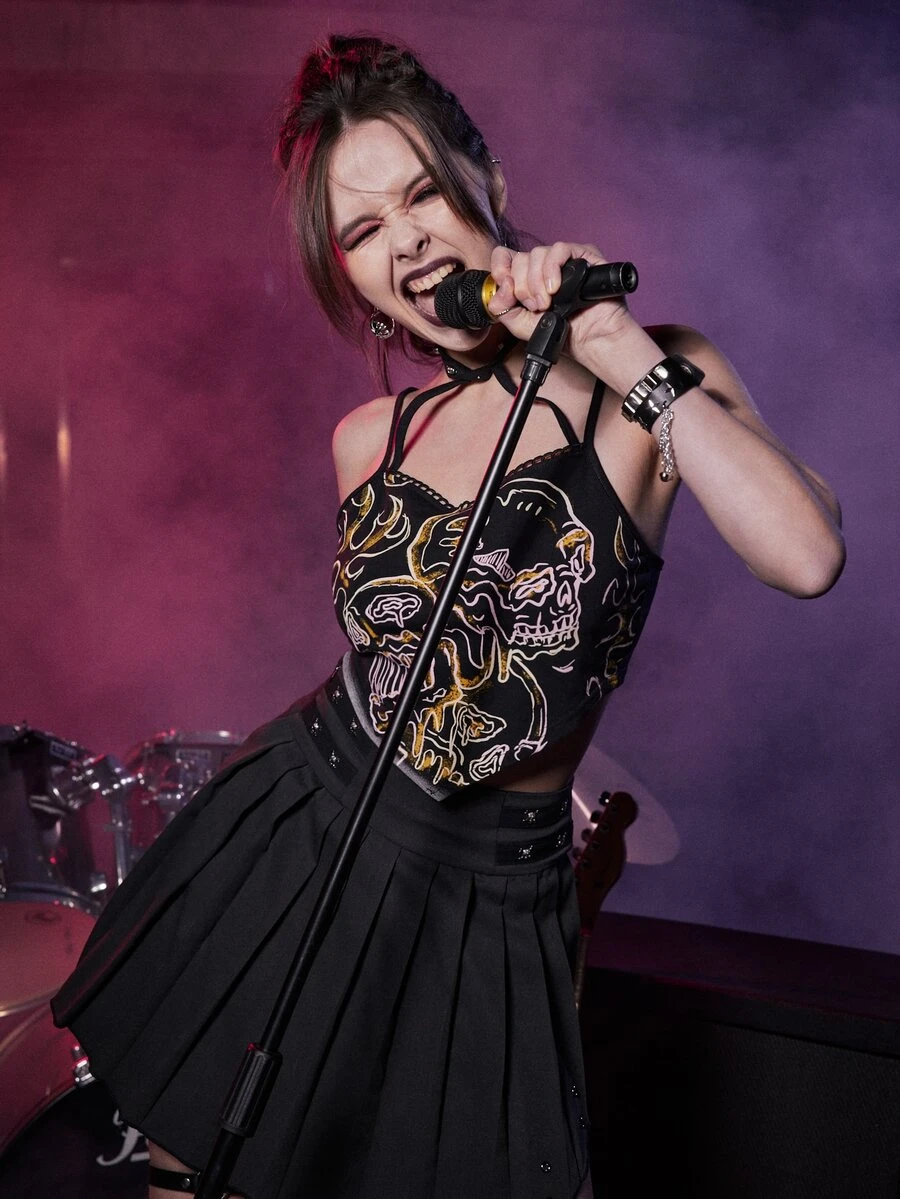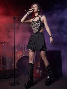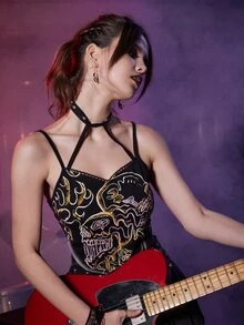 Grunge Punk à motif tête de mort Bandana Top à fines brides court