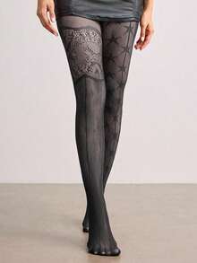 ROMWE Avant 1 paire de chaussettes résille en dentelle florale sexy, collants noirs rétro, bas transparents légers et élastiques