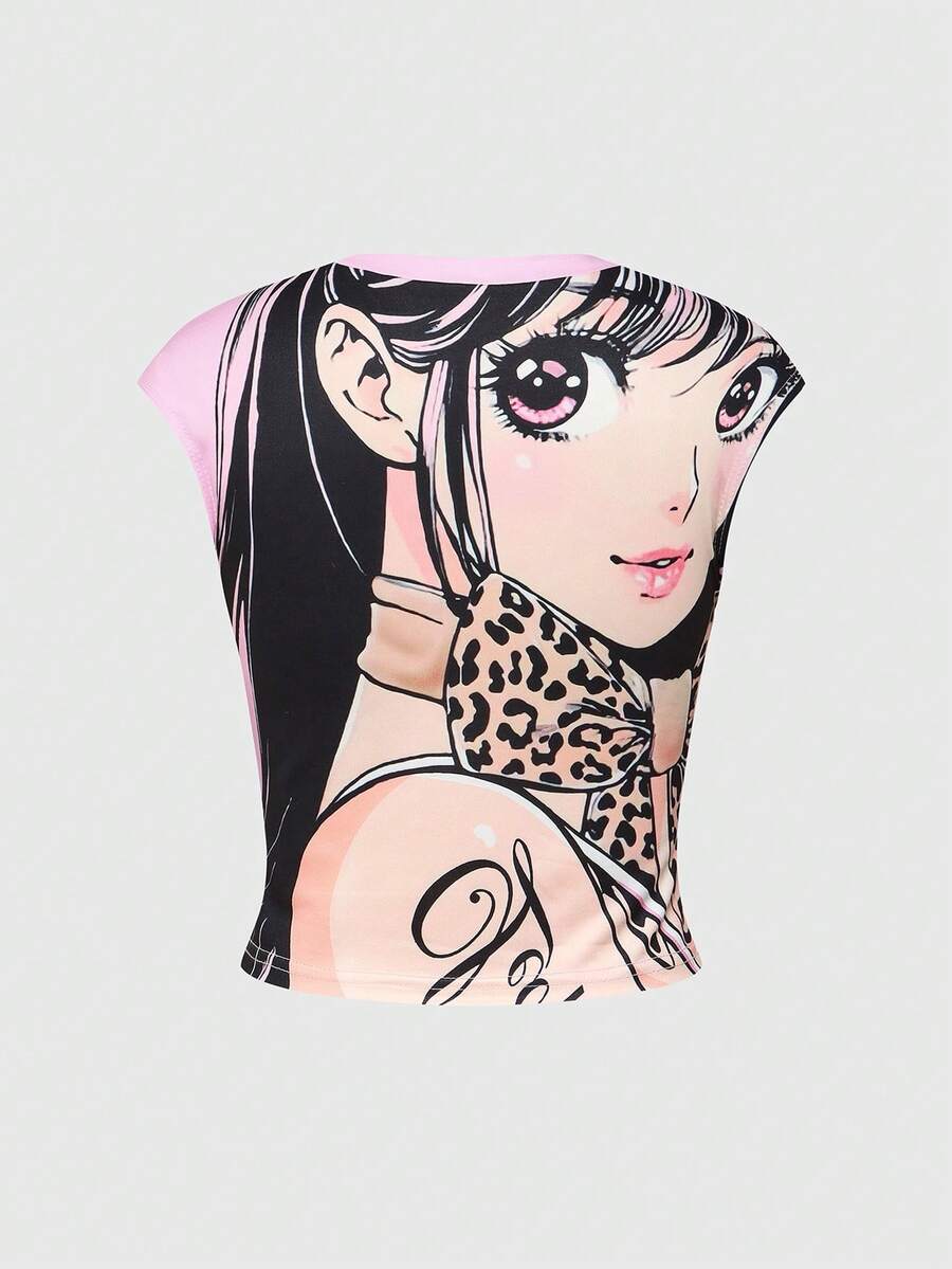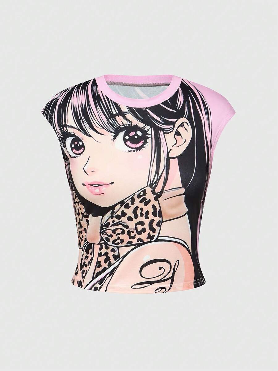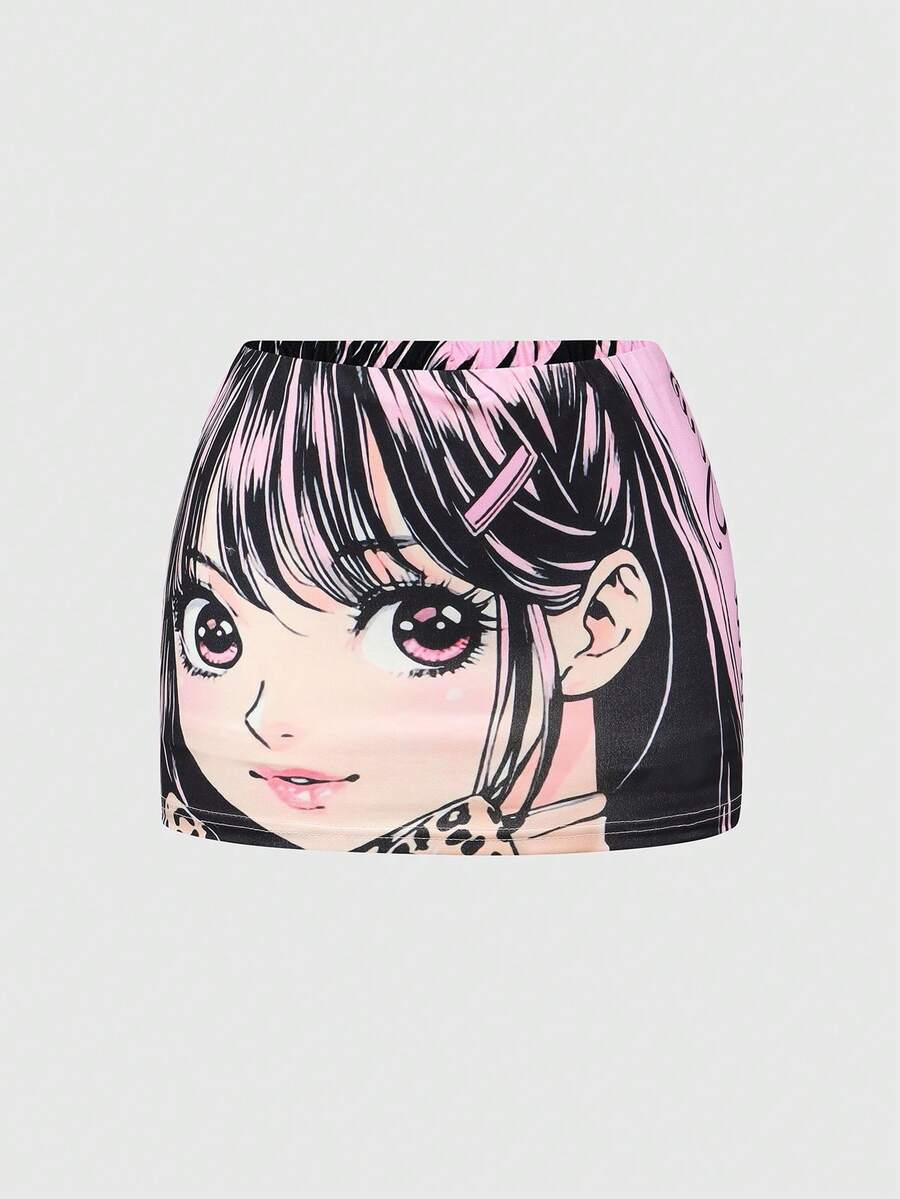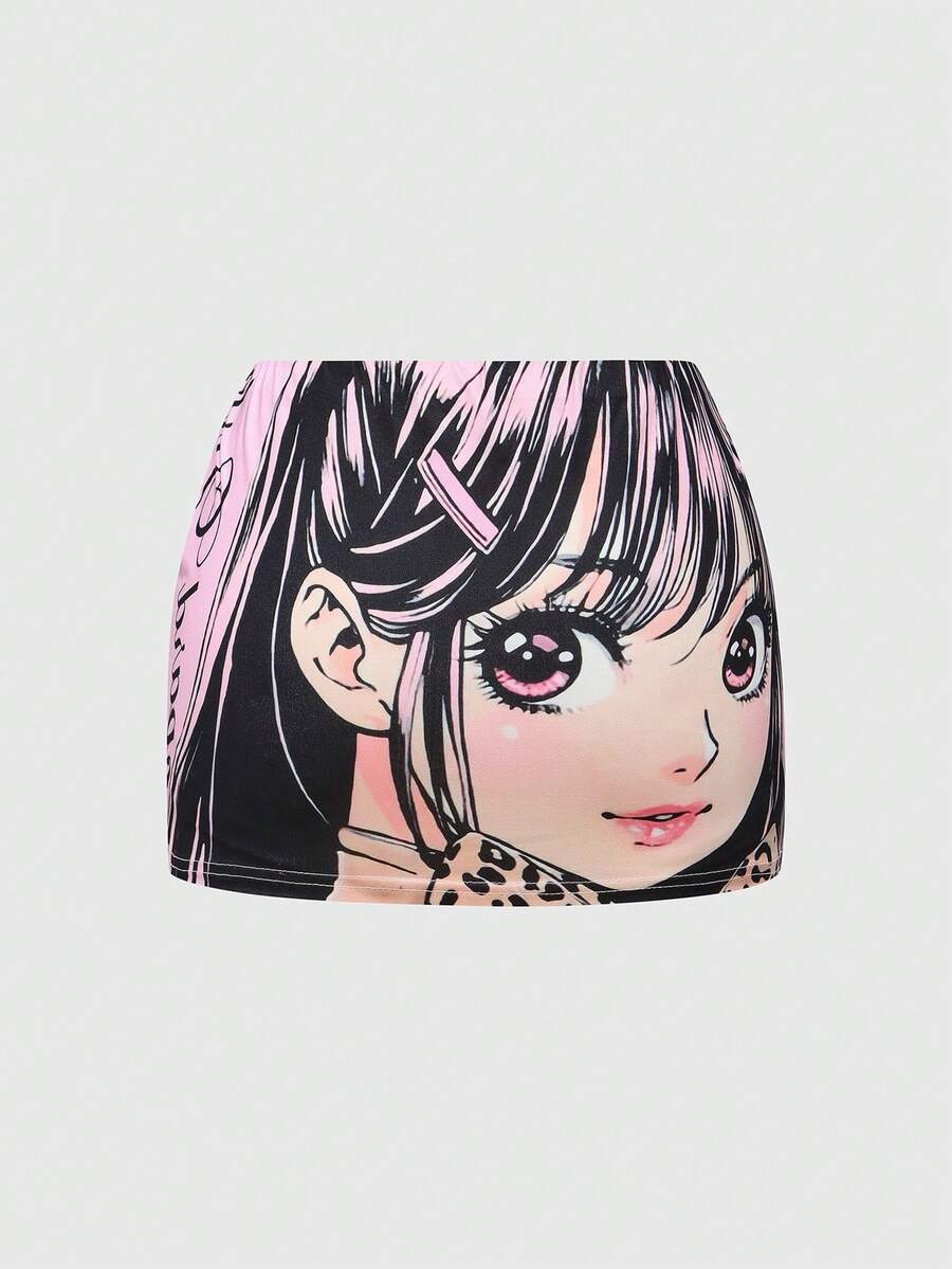 ROMWE Avant 2 pièces/set Top court et jupe moulante imprimés style anime Y2K pour filles