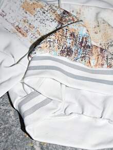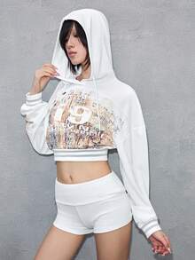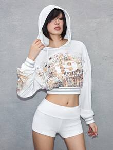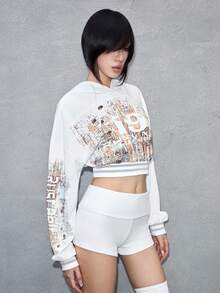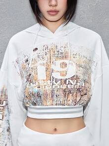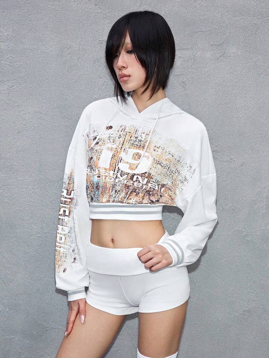 ROMWE Avant sweat-shirt à capuche court avec effet de rouille et imprimé numérique avant-gardiste