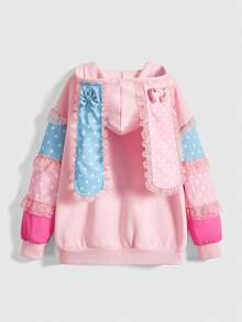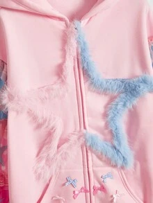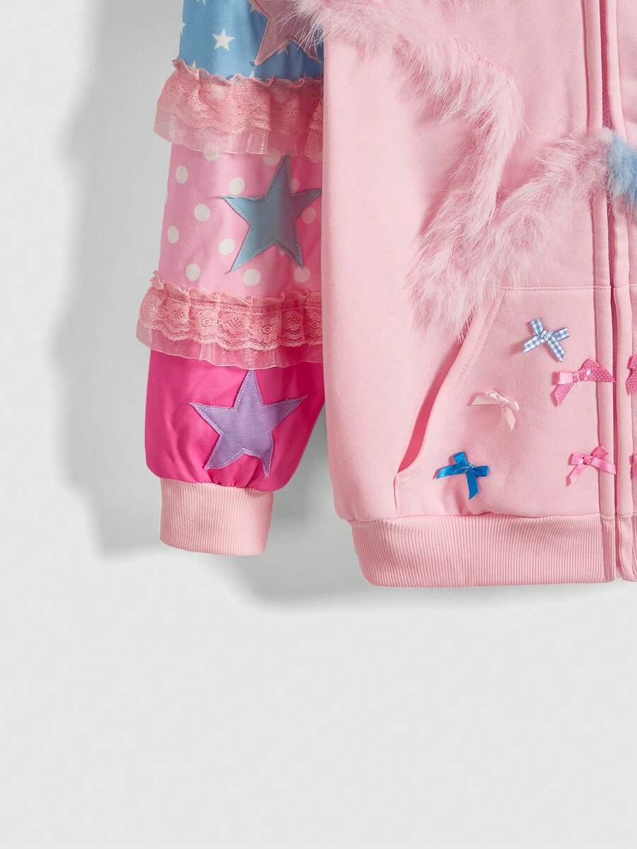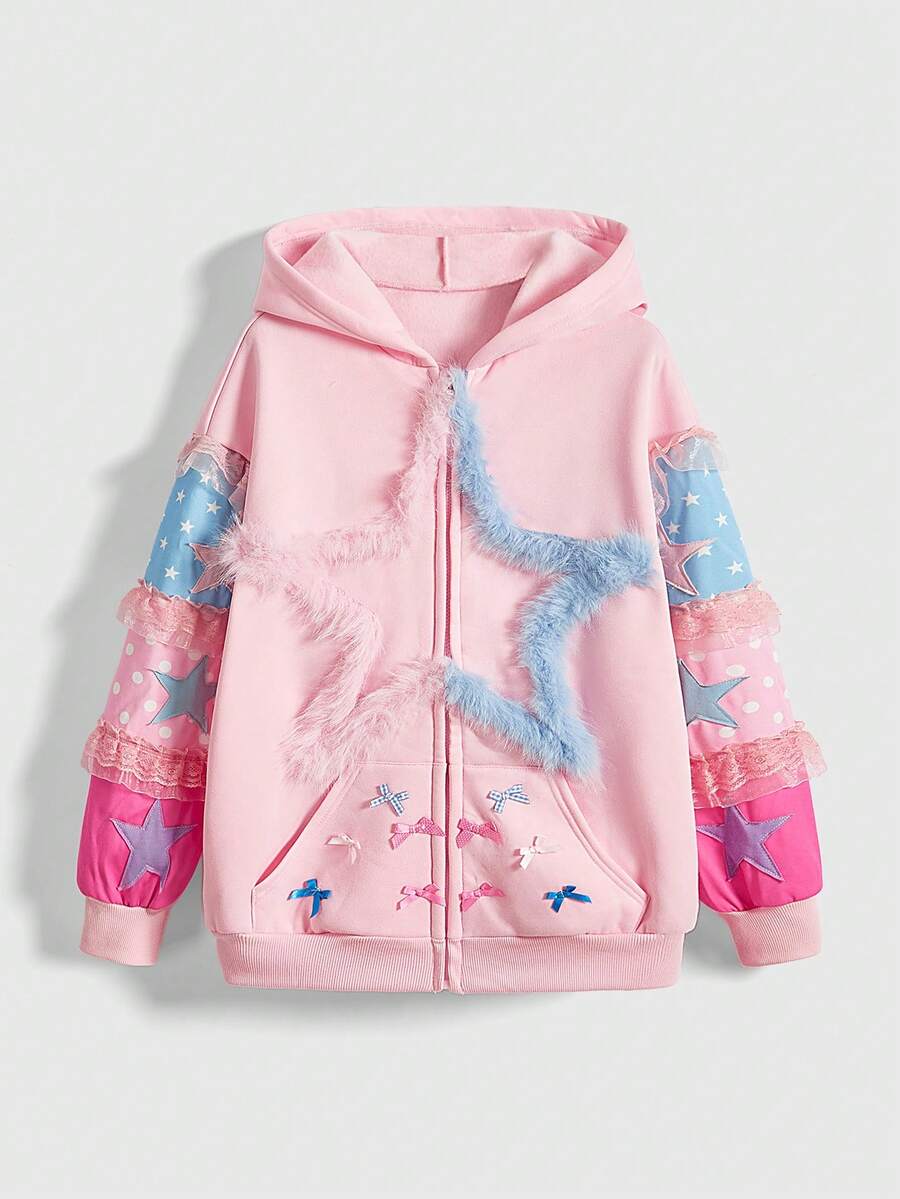 ROMWE Avant Sweat-shirt à capuche décoré d'étoiles et de nœuds bicolores mignons et kawaii pour femmes