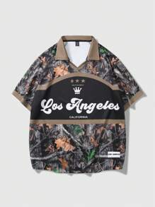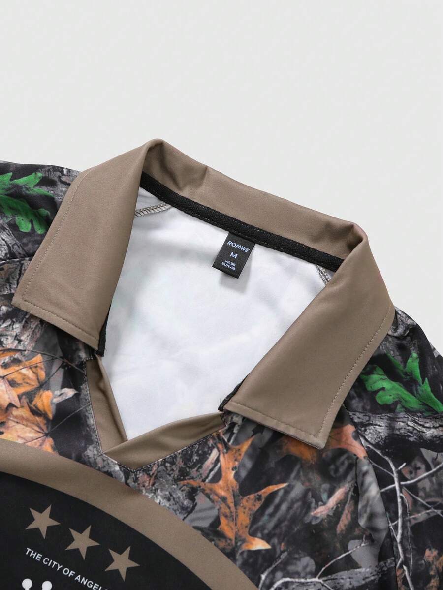 ROMWE Avant Polo-shirt casual pour hommes avec impression colorbloquée et graphique, été, école