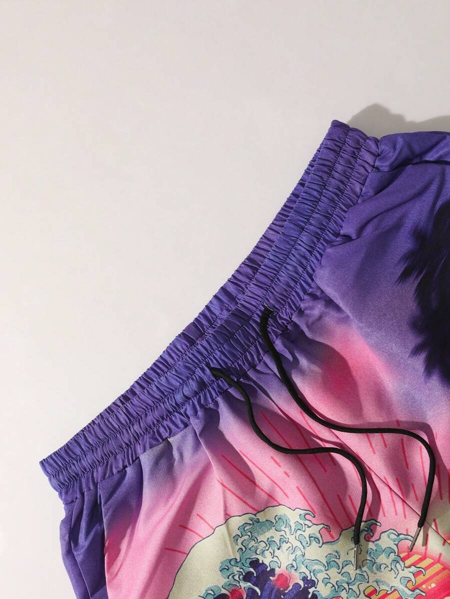 ROMWE Avant Short Imprimé Vague Pour Hommes Adapté À Un Usage Quotidien Au Printemps Et En Été