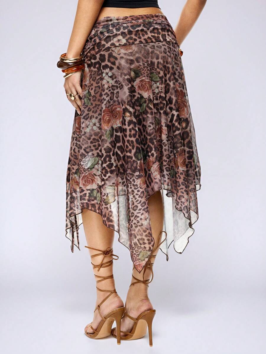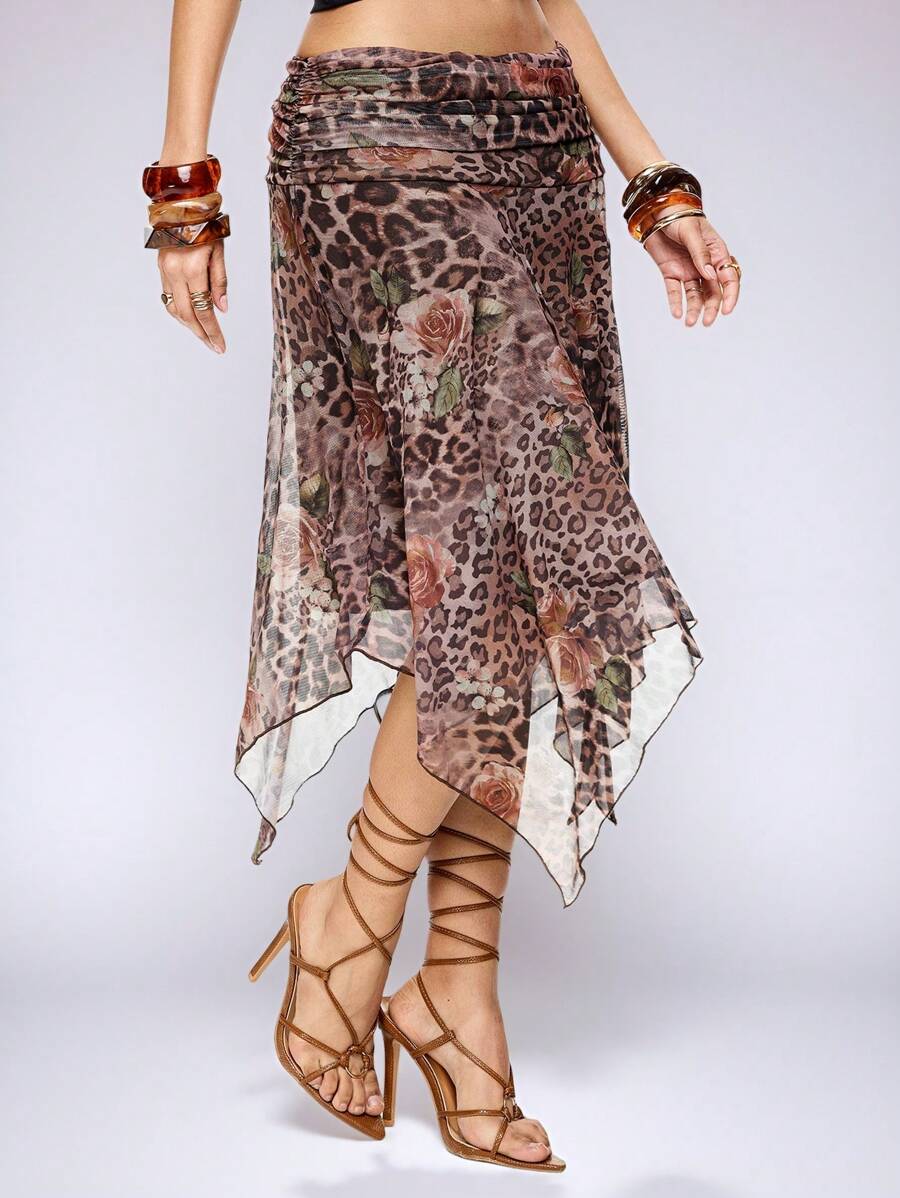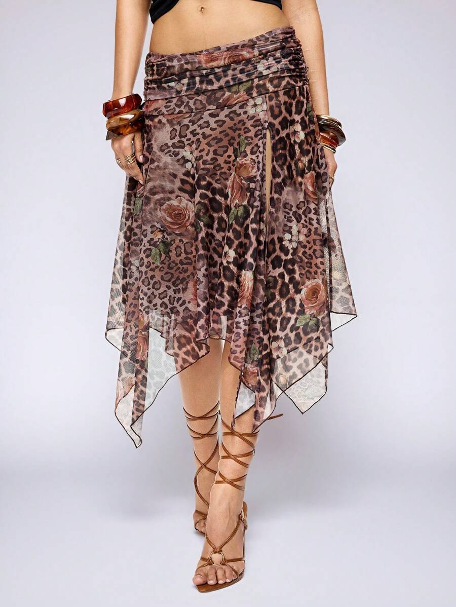 ROMWE Avant Mini-jupe sexy taille basse à imprimé léopard et ourlet asymétrique pour femme, style chic et sexy, style festival de musique de Miami