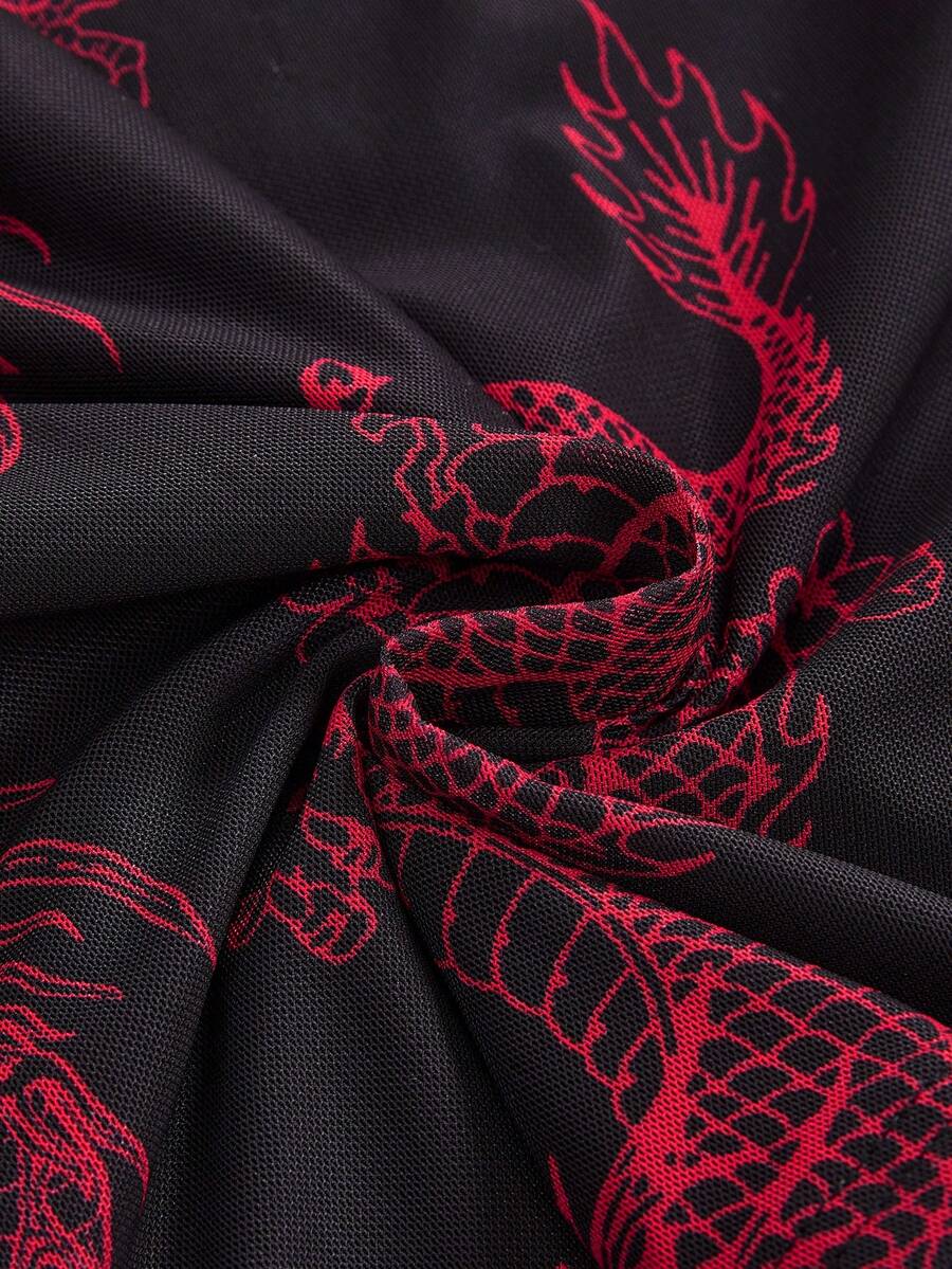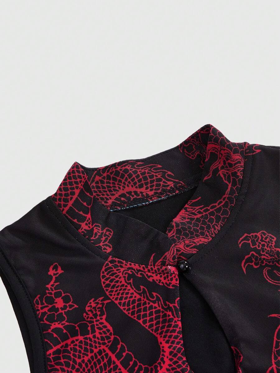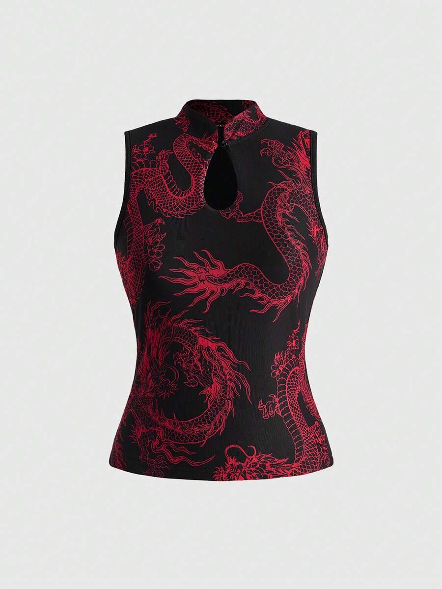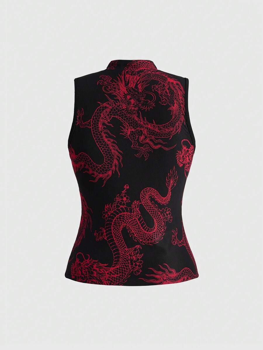 ROMWE Avant Débardeur femme style rétro J-mode imprimé tigre rouge chinois