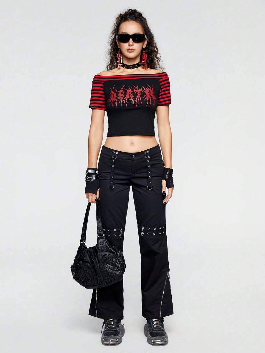 ROMWE Avant T-shirts pour femmes Casual Lettres Rayé