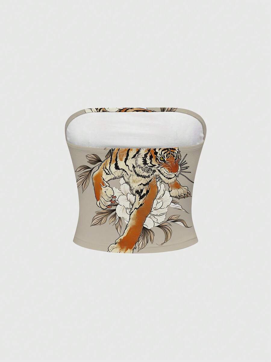 ROMWE Avant Top court avec motif tigre, style chinois sexy et à la mode pour festival de musique de rue pour femmes
