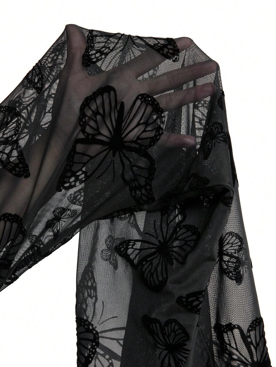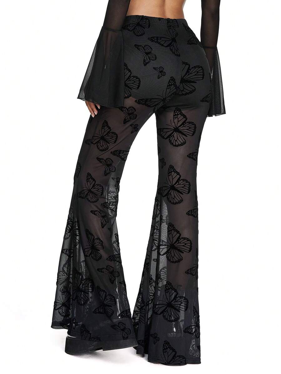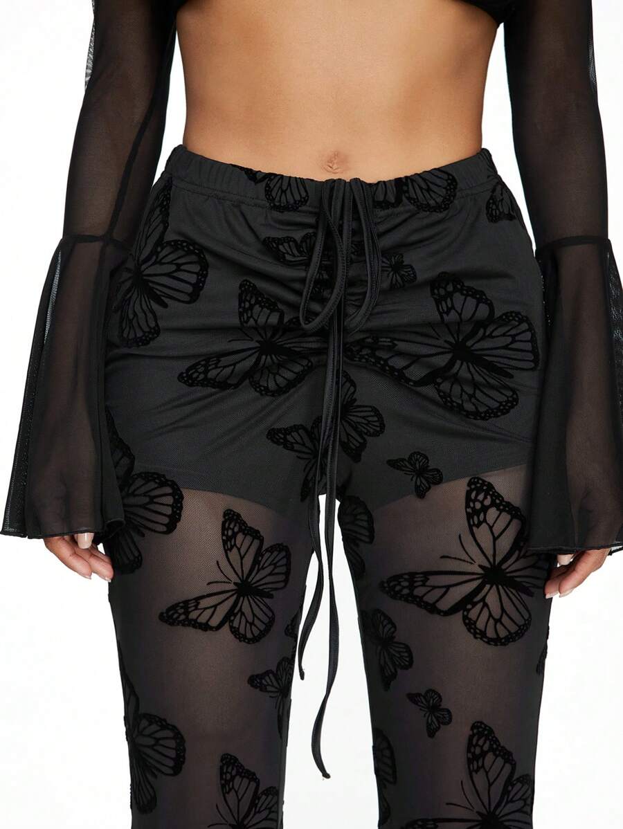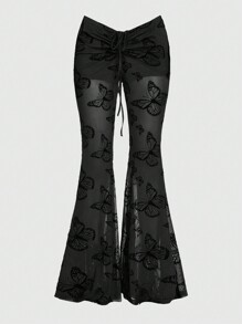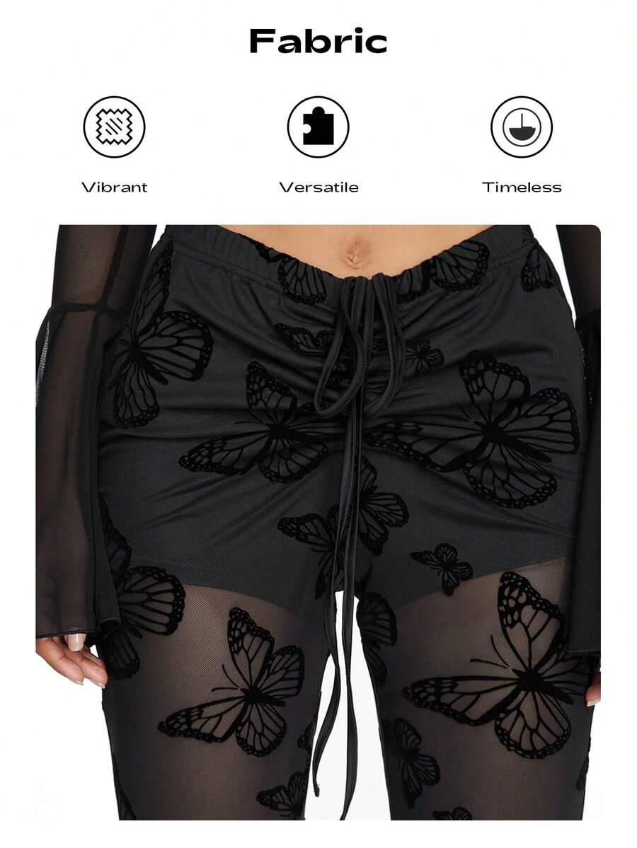ROMWE Avant Pantalon évasé à lacets avec papillon en dentelle pour femmes sans ceinture, pantalon long exquis pour festival de rave