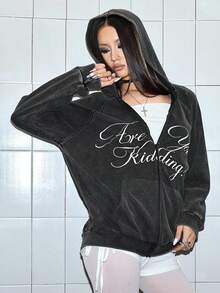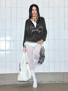 ROMWE Avant Sweat-shirt-shirt décontracté pour femmes avec imprimé lettres