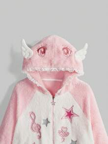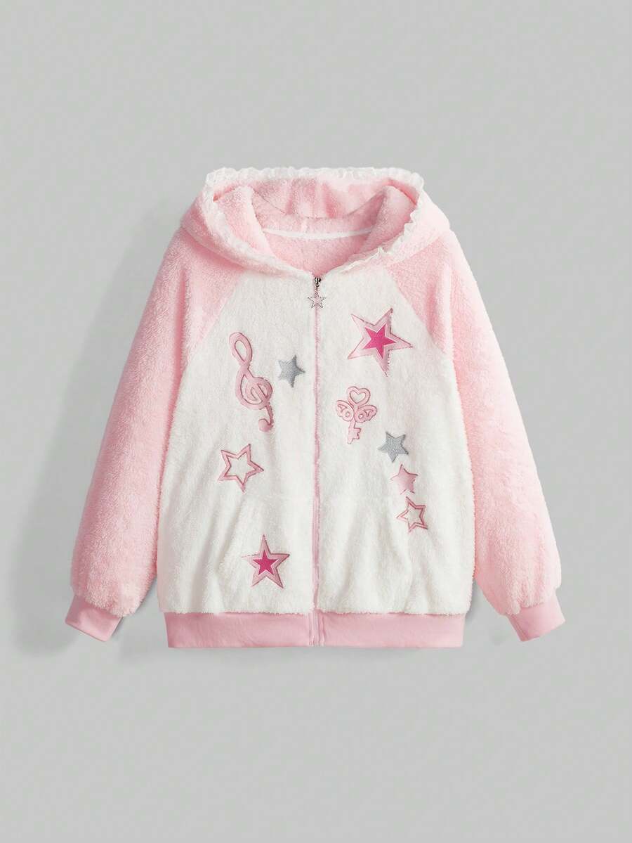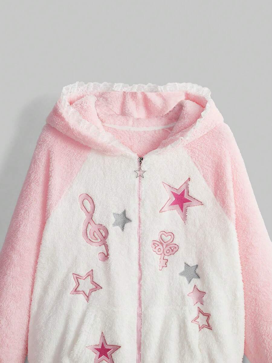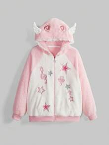 ROMWE Avant sweat-shirt à capuche zippé pour femmes avec décoration d'ailes, manches raglan bicolores et broderie d'étoile à cinq branches