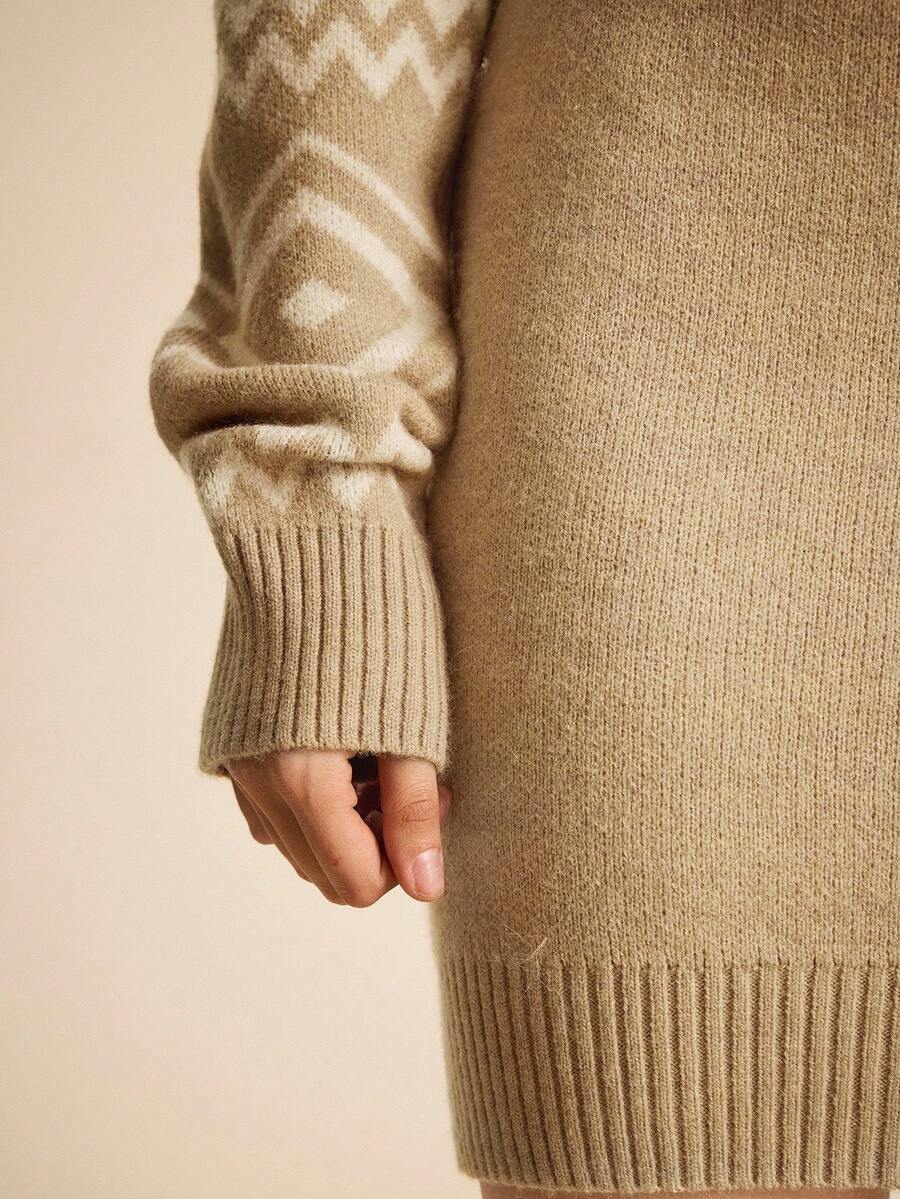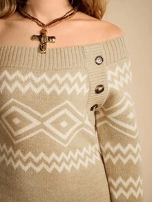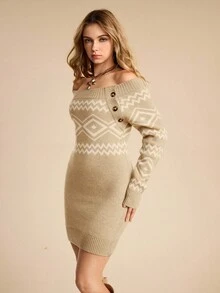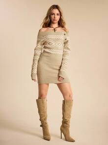 ROMWE Avant Robe pull ajustée à manches longues avec imprimé géométrique épaules dénudées pour femmes