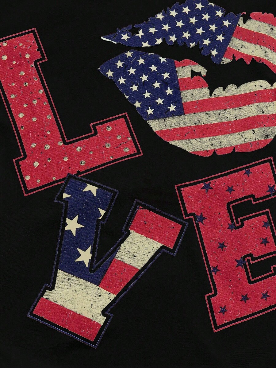 ROMWE Avant T-shirt d'été pour femmes, style casual Kpop, col asymétrique avec imprimé drapeau et lèvres