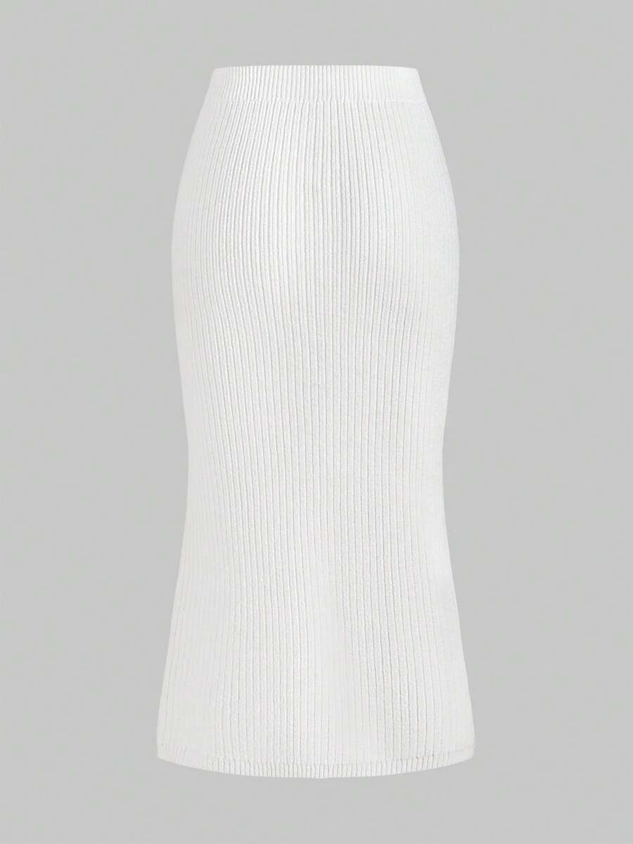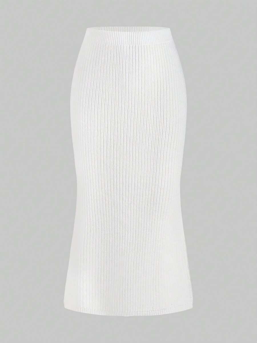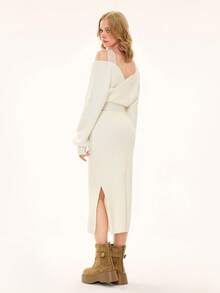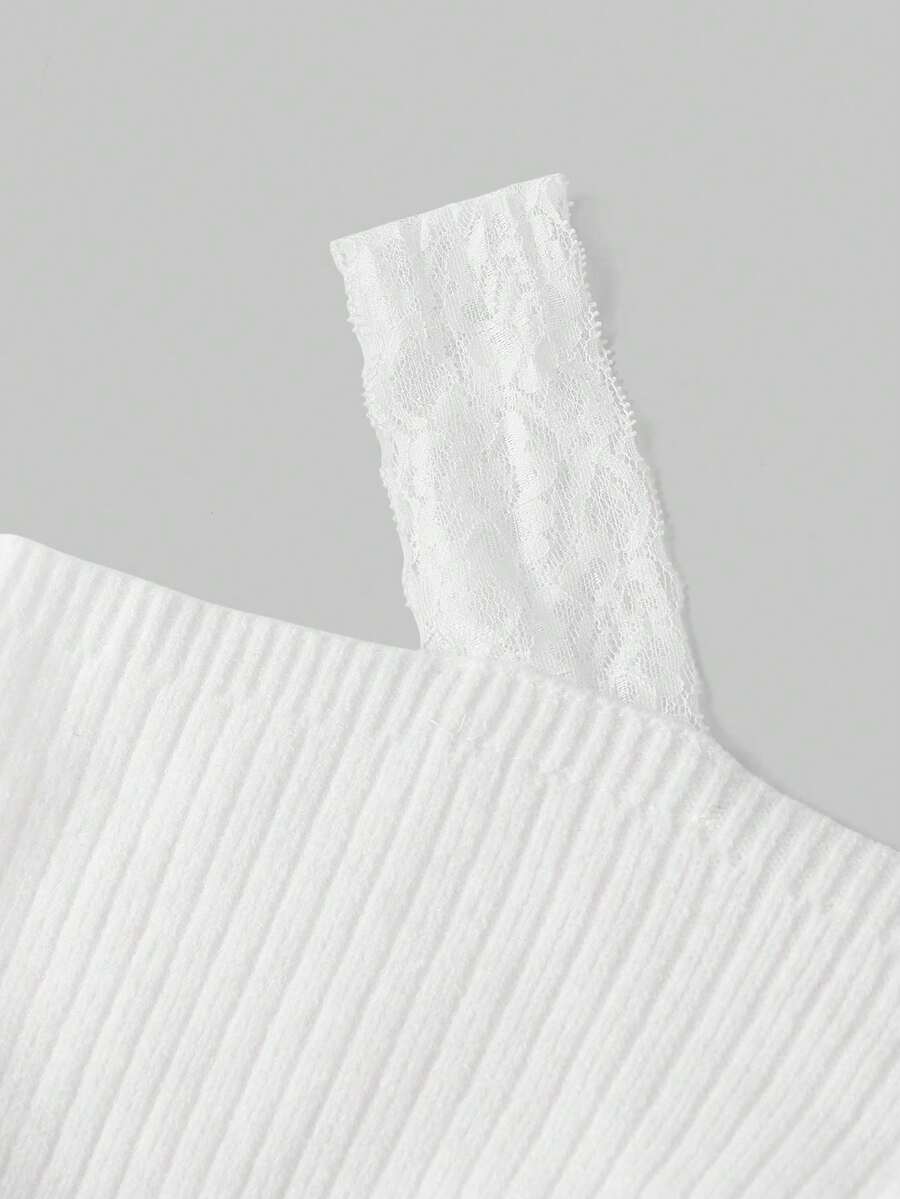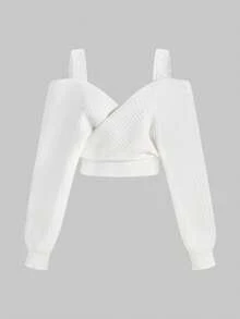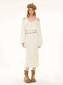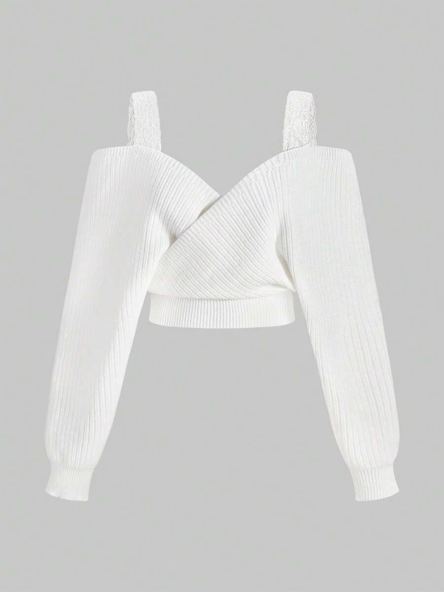ROMWE Avant Ensemble de 2 pièces : pull sexy à manches longues avec bretelles épaisses et décolleté plongeant, épaules dénudées, en dentelle, style décontracté français, associé à une mini-jupe moulante