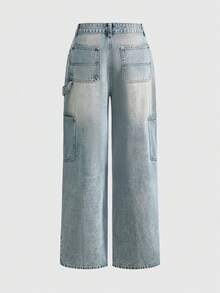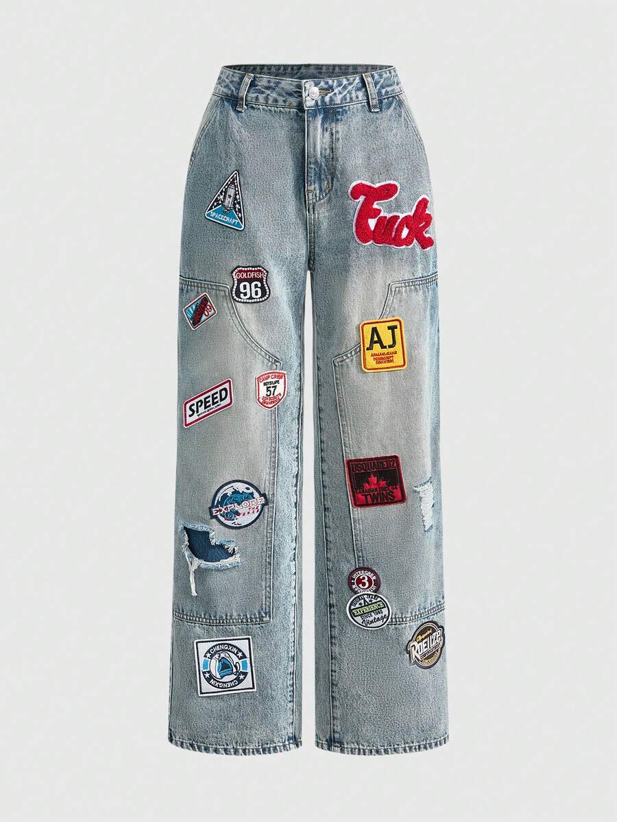 ROMWE Avant Pantalon ample à taille élastique avec logo brodé, style streetwear rétro Y2K pour femmes