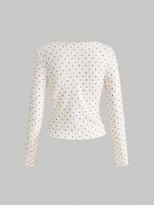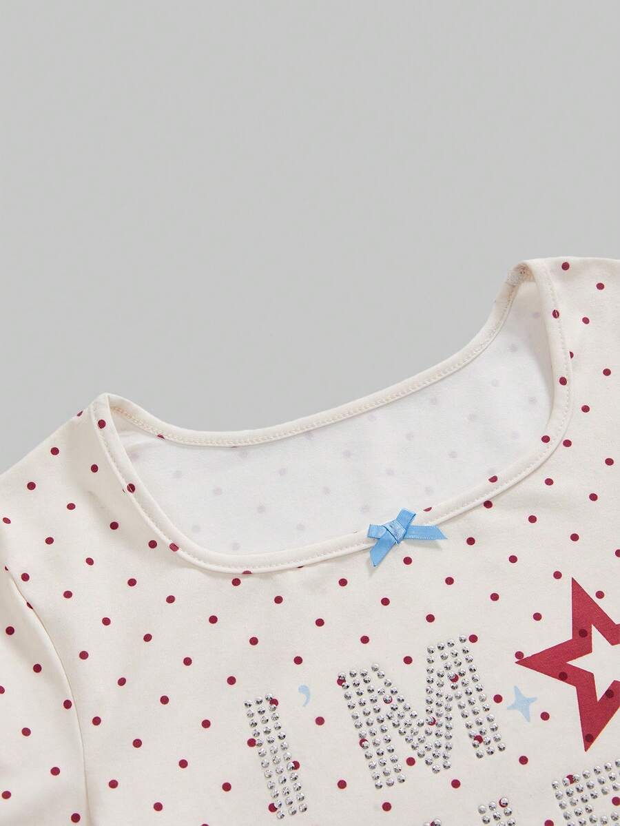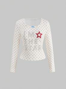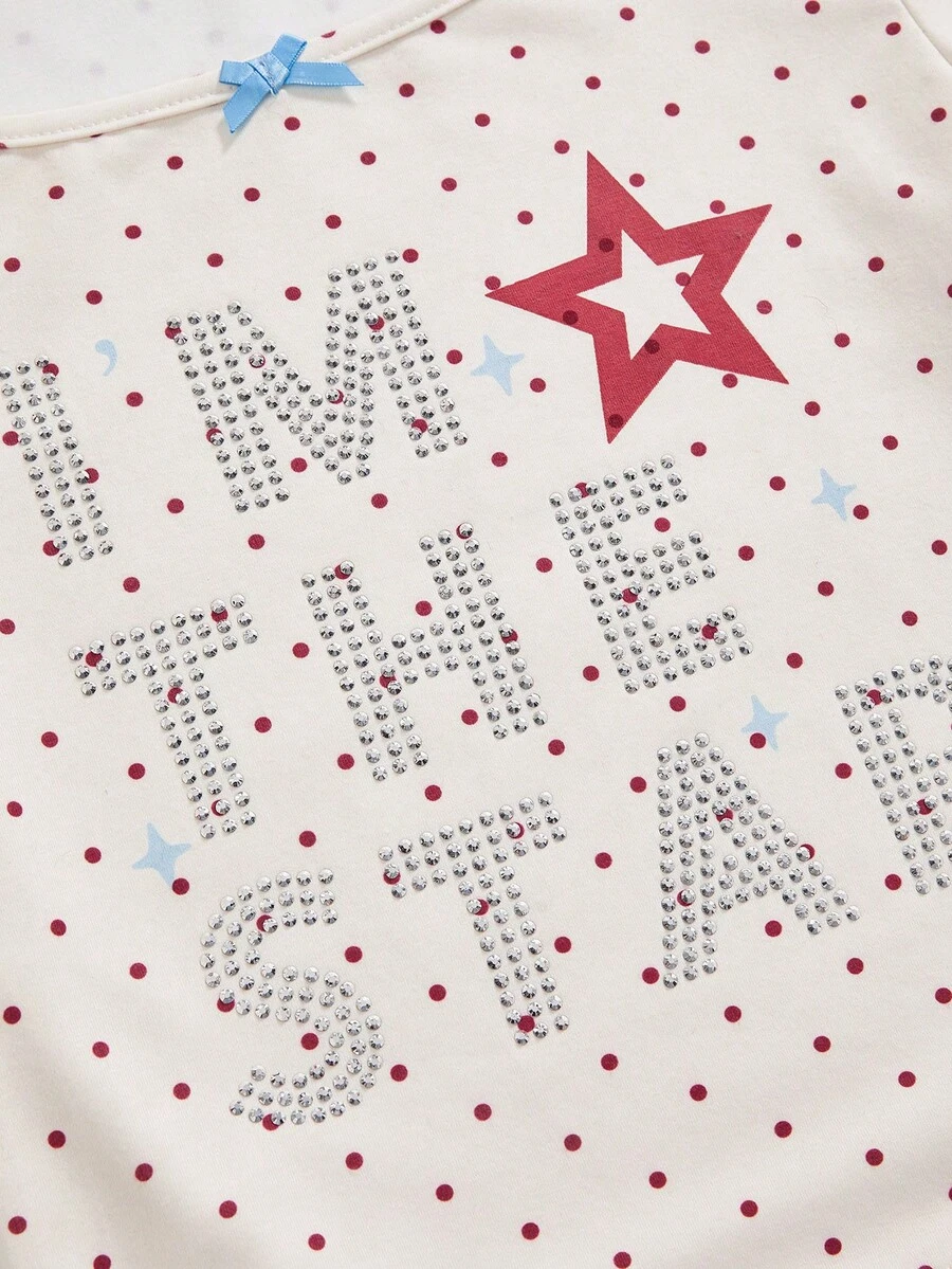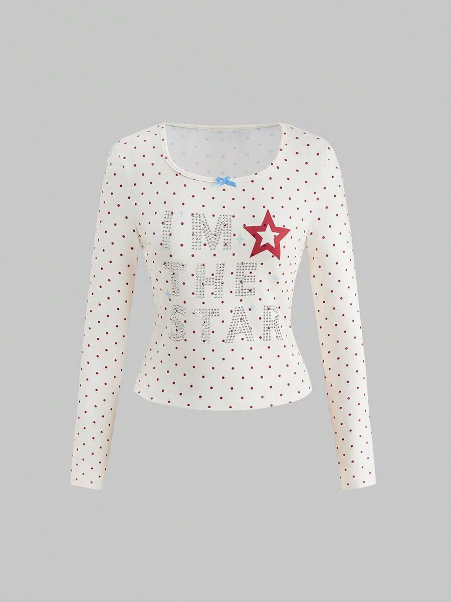 ROMWE Avant T-shirt moulant pour femmes avec imprimé étoile strass, slogan "Y2K Babe" et pois