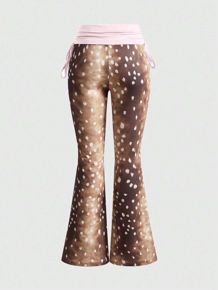 ROMWE Avant Pantalon évasé à taille basse et imprimé floral de cerf, Y2K
