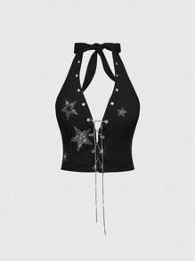 ROMWE Avant Top court style ras-du-cou avec garniture de strass pour femmes, style Y2K