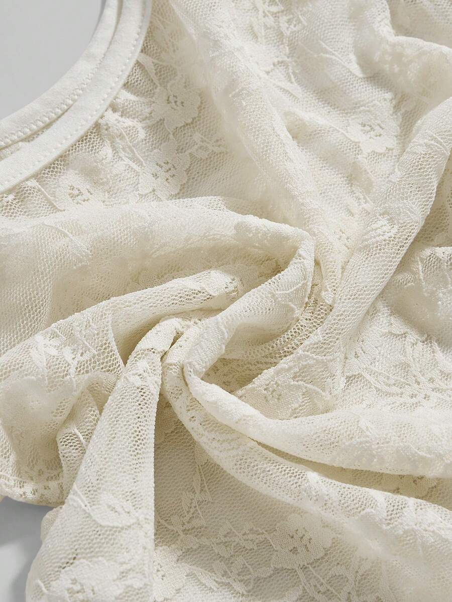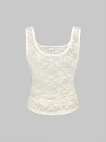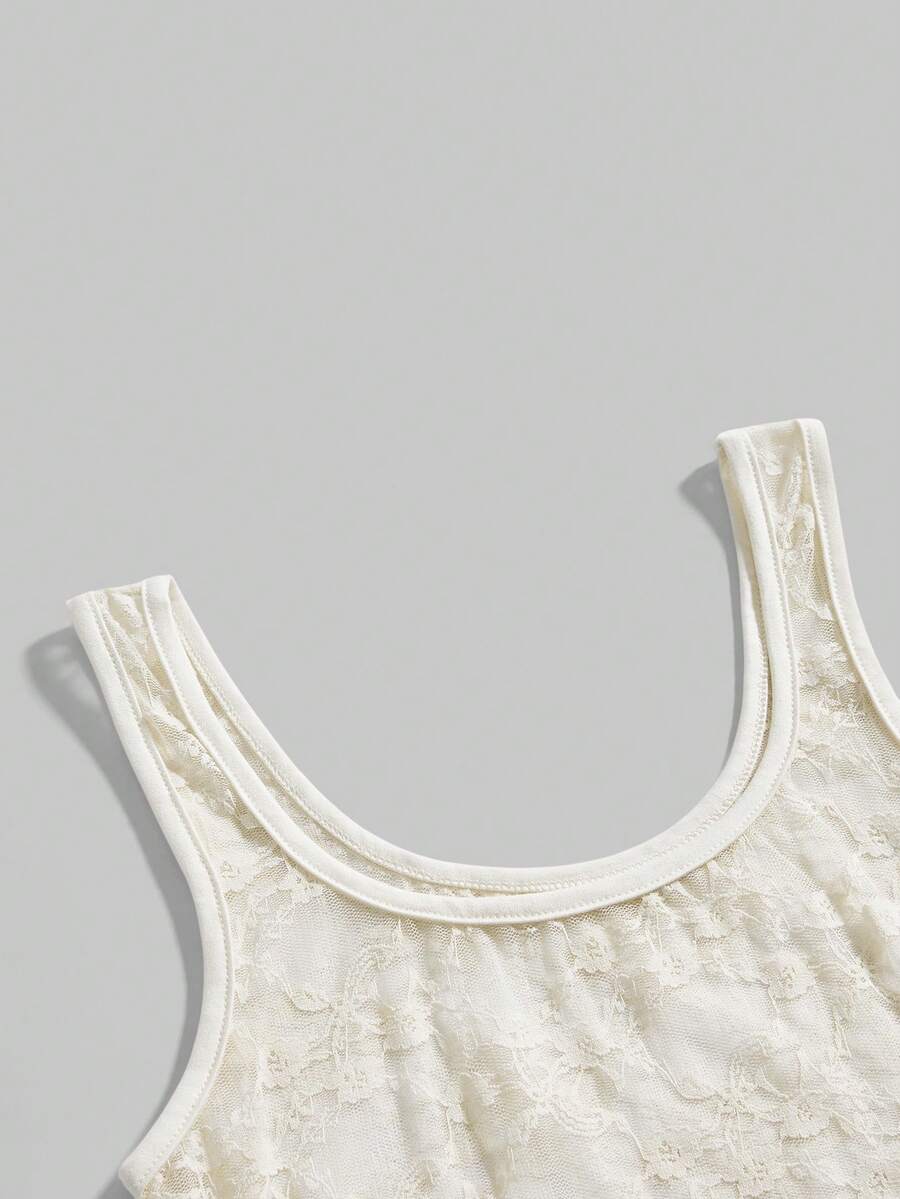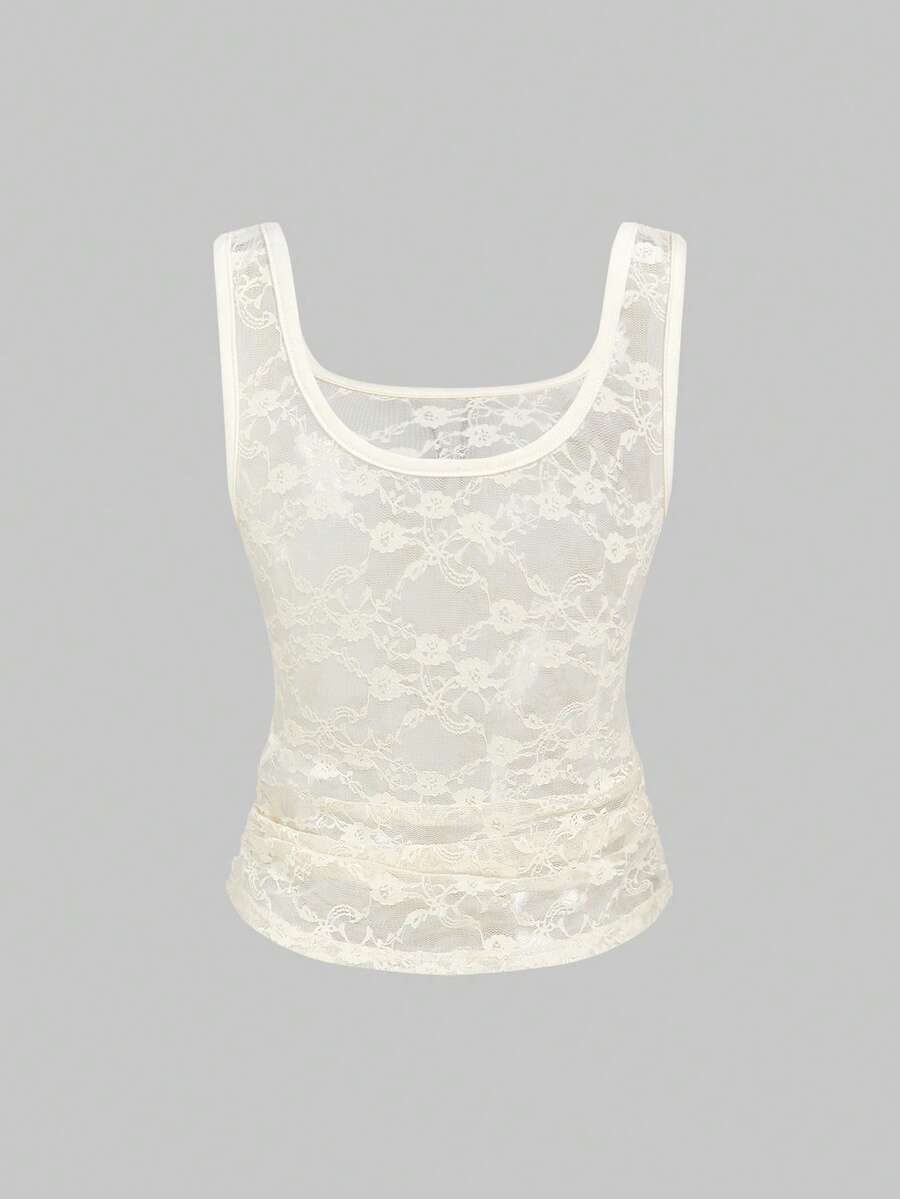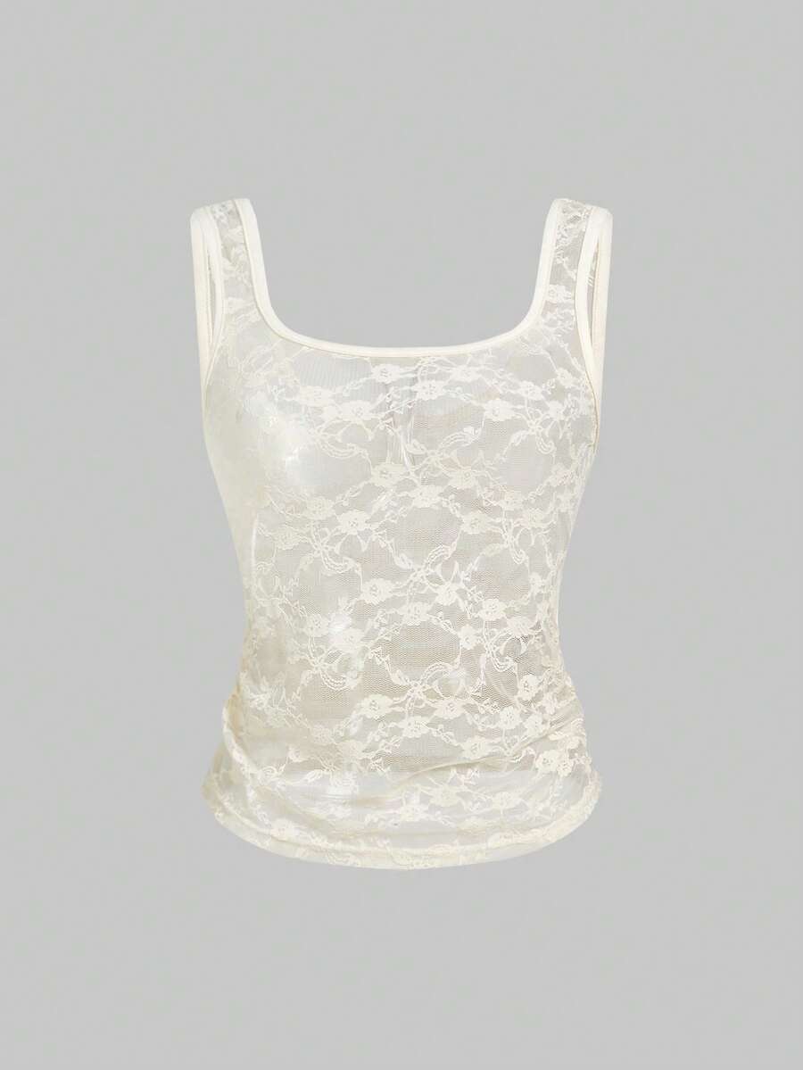 ROMWE Avant Débardeur transparent en dentelle à col en U pour femmes, style Y2K