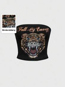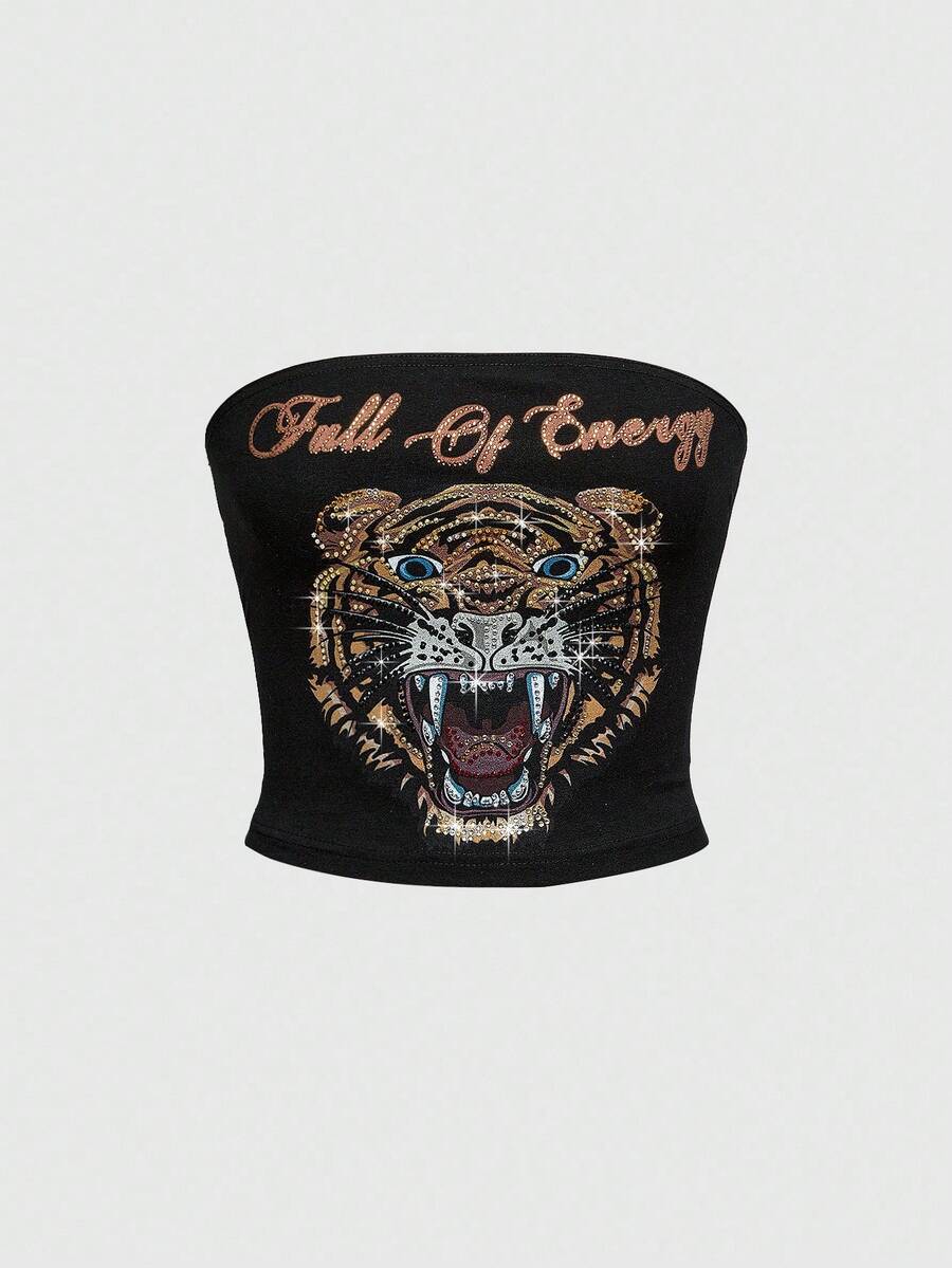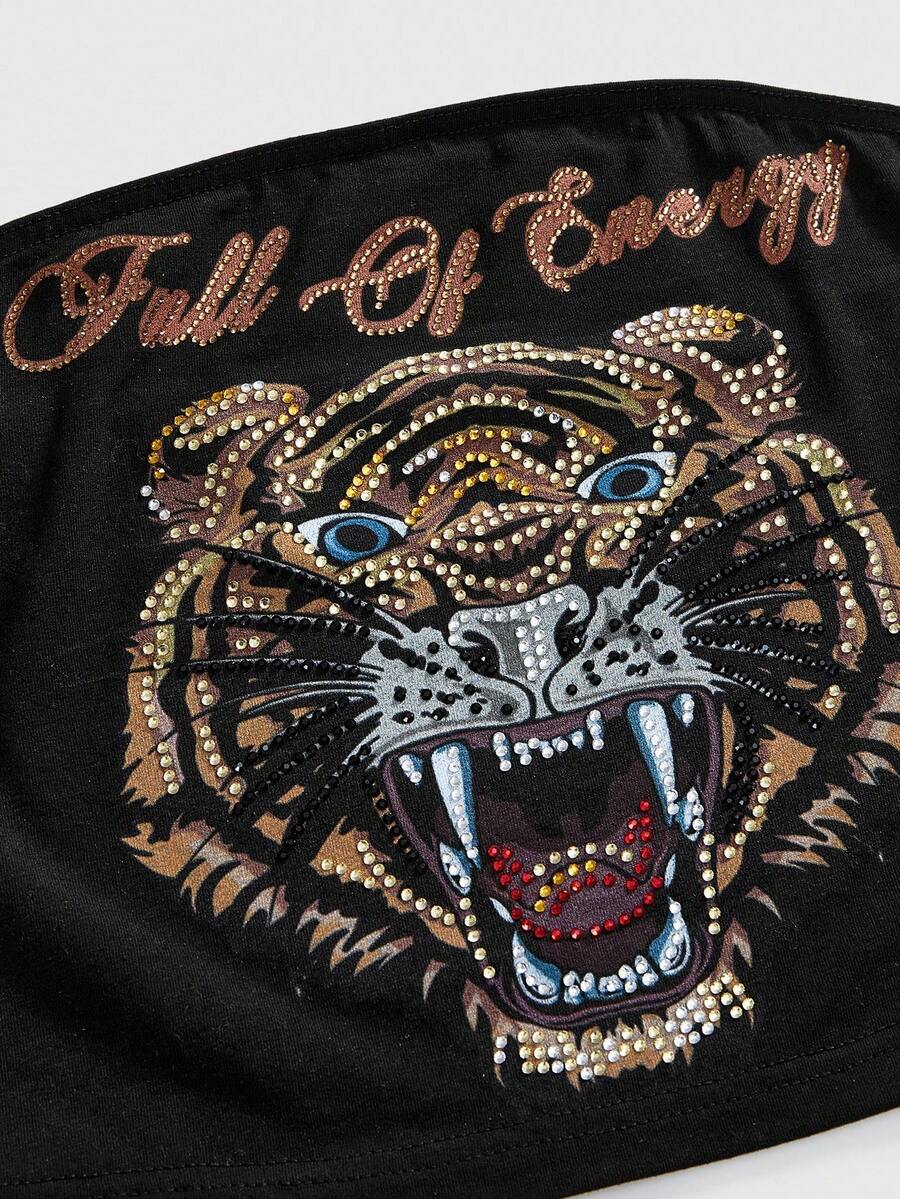 ROMWE Avant Top bandeau décoré de strass à imprimé tigre vintage Y2K