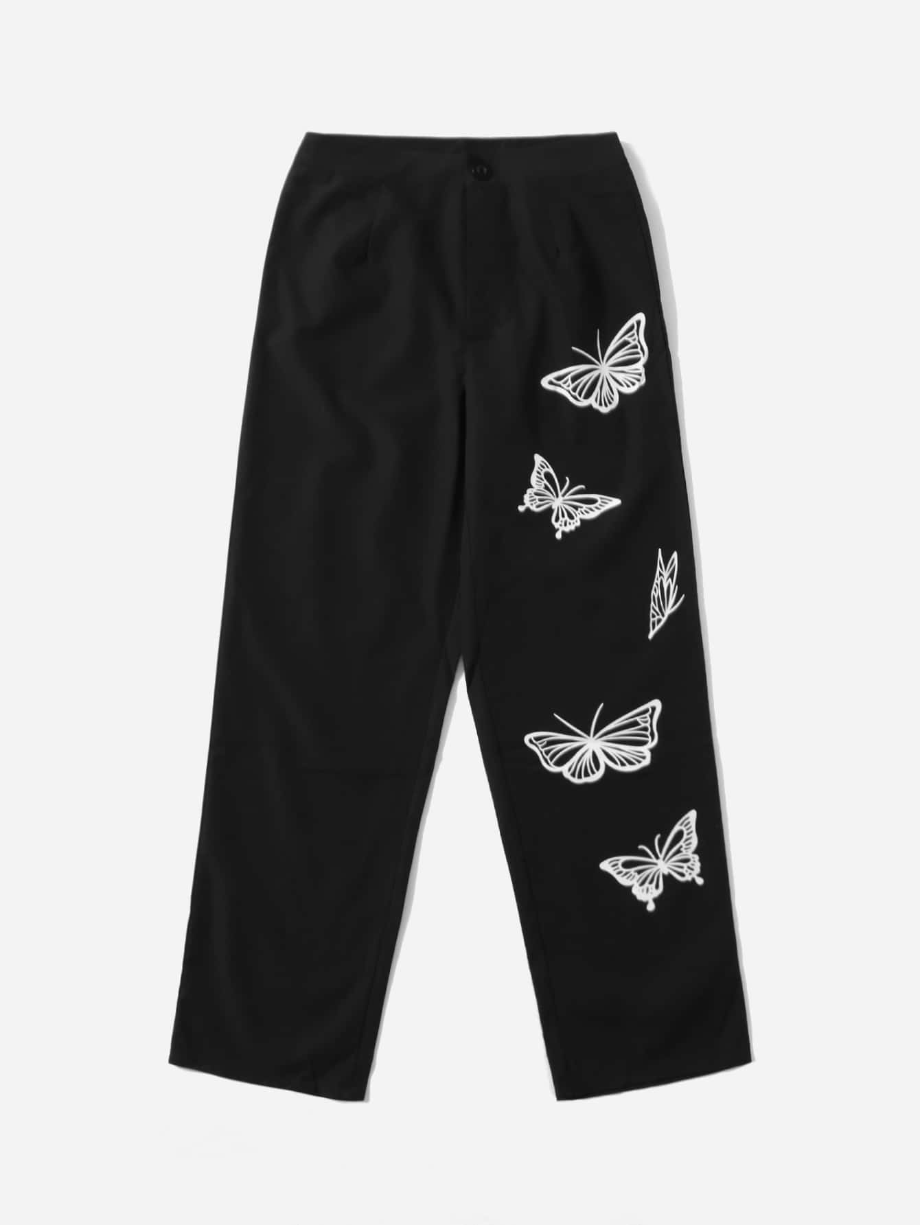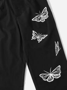 ROMWE Limited Pantalon à imprimé papillon zippé
