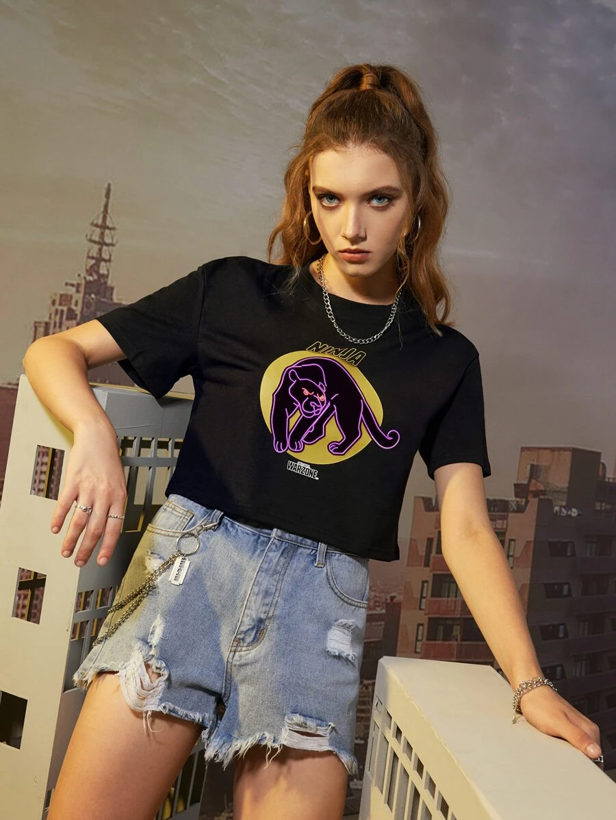 ROMWE X Call of Duty T-shirt court à lettres