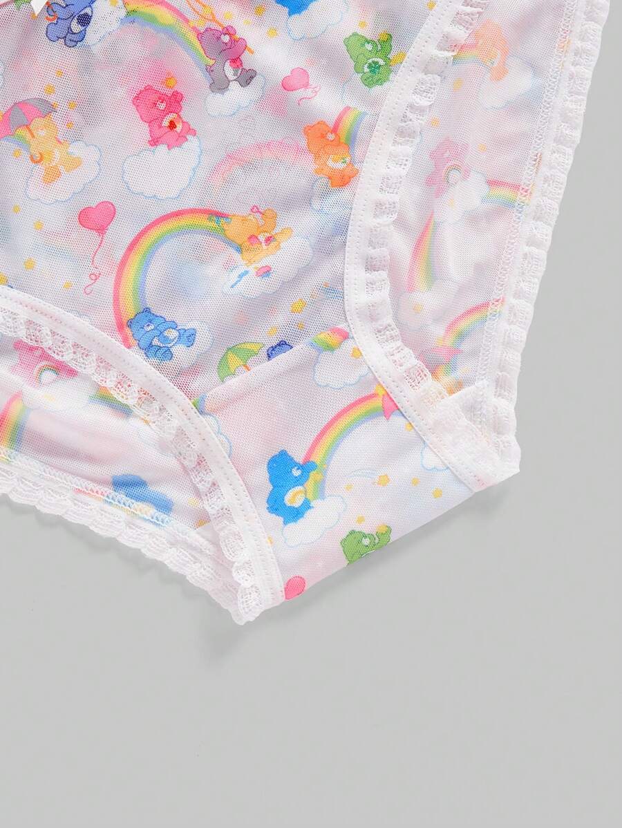 ROMWE X Care Bears 3 pièces/paquet Culottes triangulaires pour femmes avec bordure en dentelle et imprimé ours de dessin animé