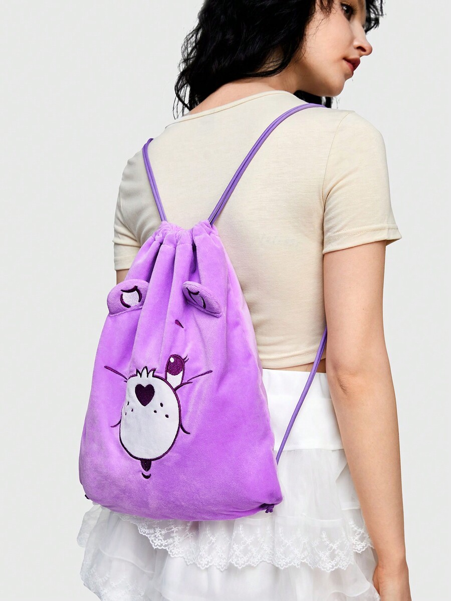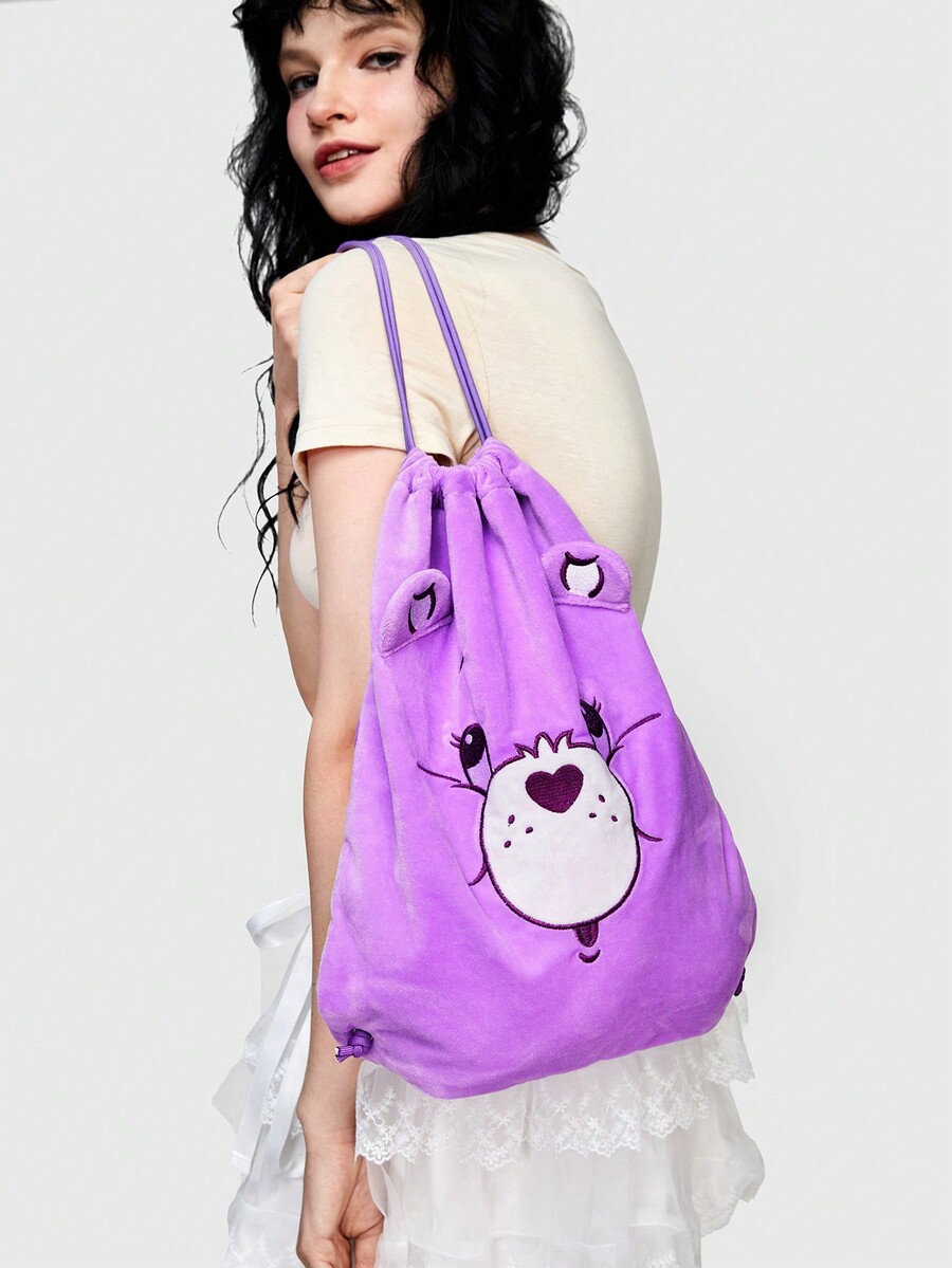 ROMWE X Care Bears Sac À Dos Violet Décontracté Mignon À Cordon De Serrage Avec Design D'ours