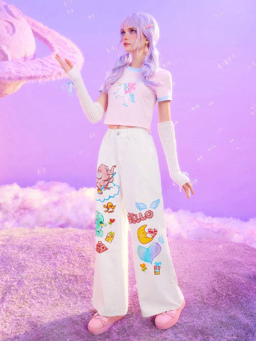 ROMWE X Care Bears Jean À Jambes Larges Avec Impression D'ours En Peluche