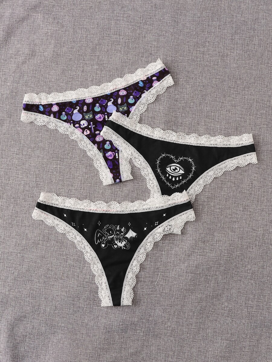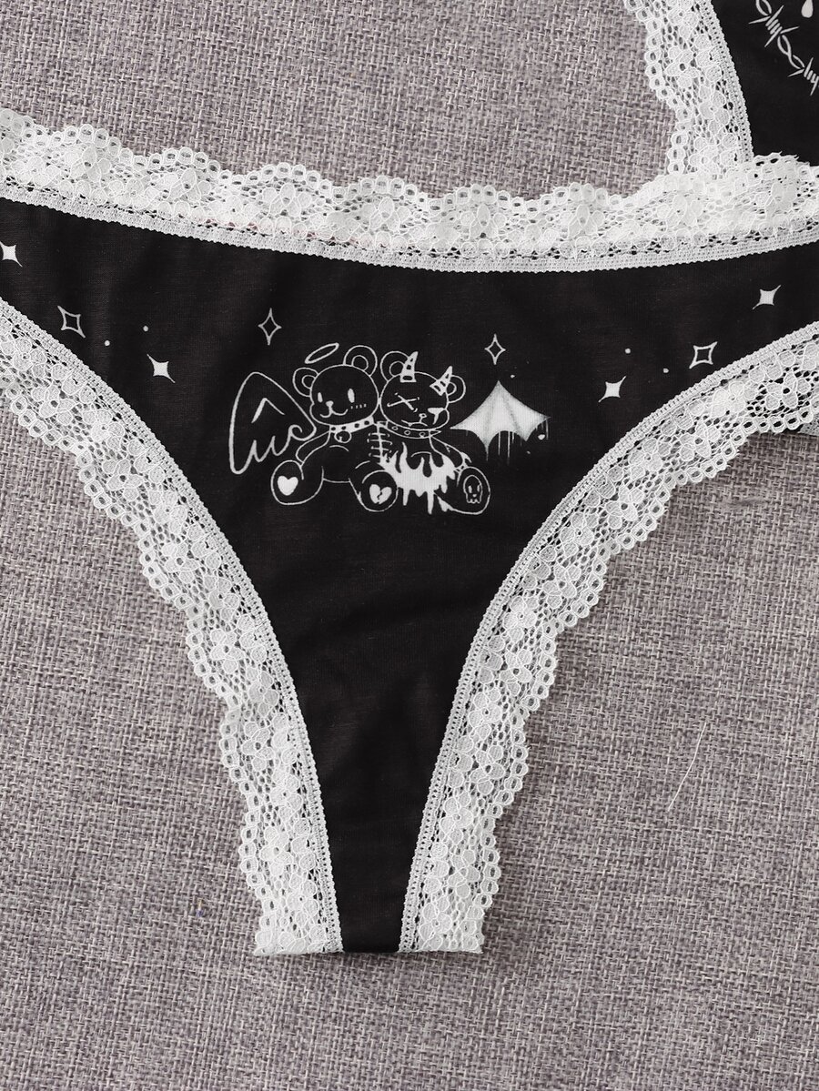 Deniart Culottes pour femmes Dentelle contrastée Cartoon