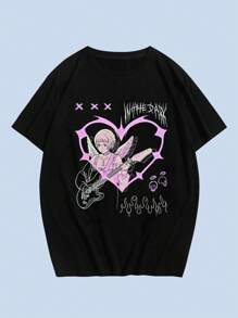 Elena Ilustra Homme T-shirt Lettre Et Dessin Animé