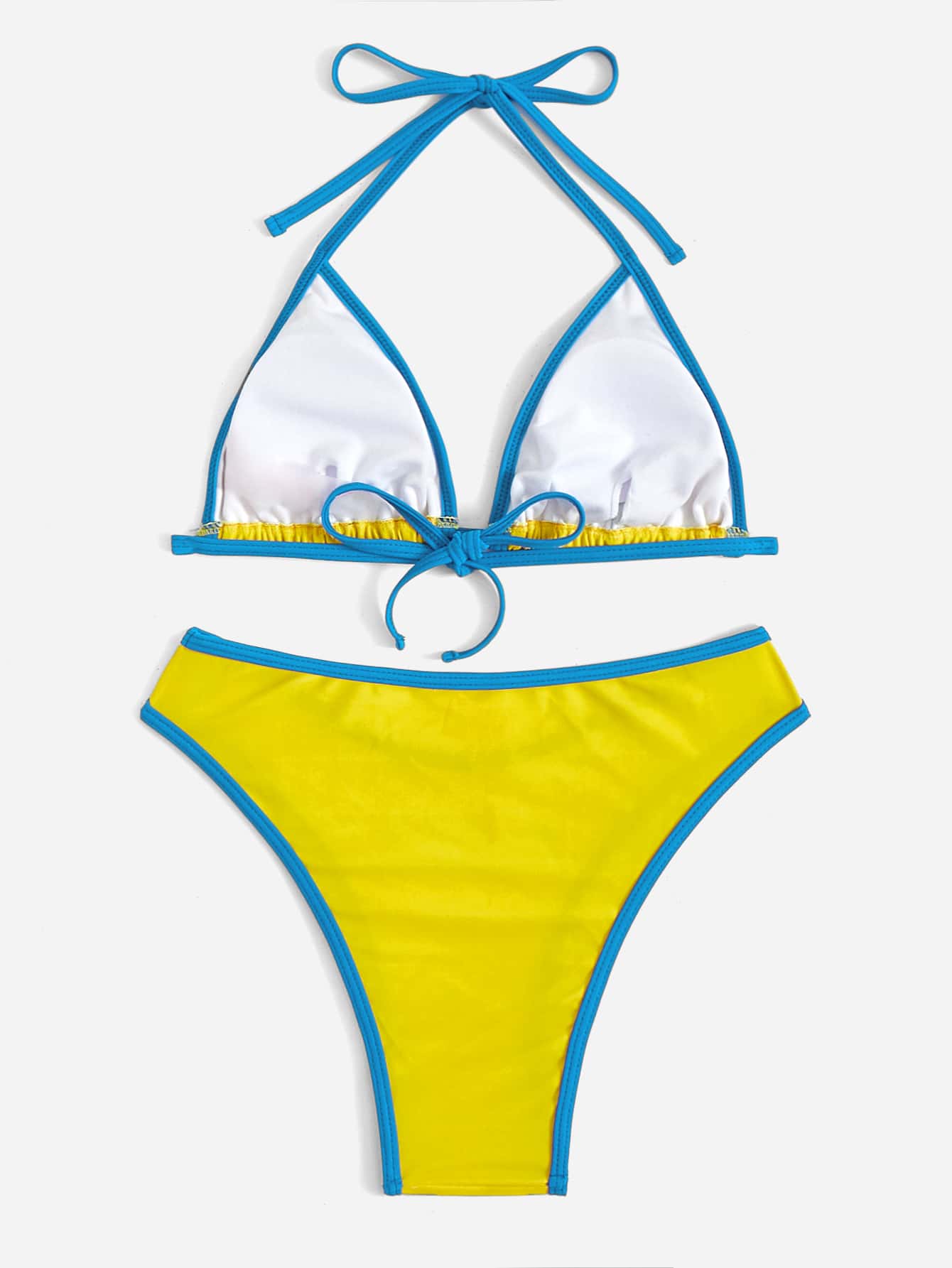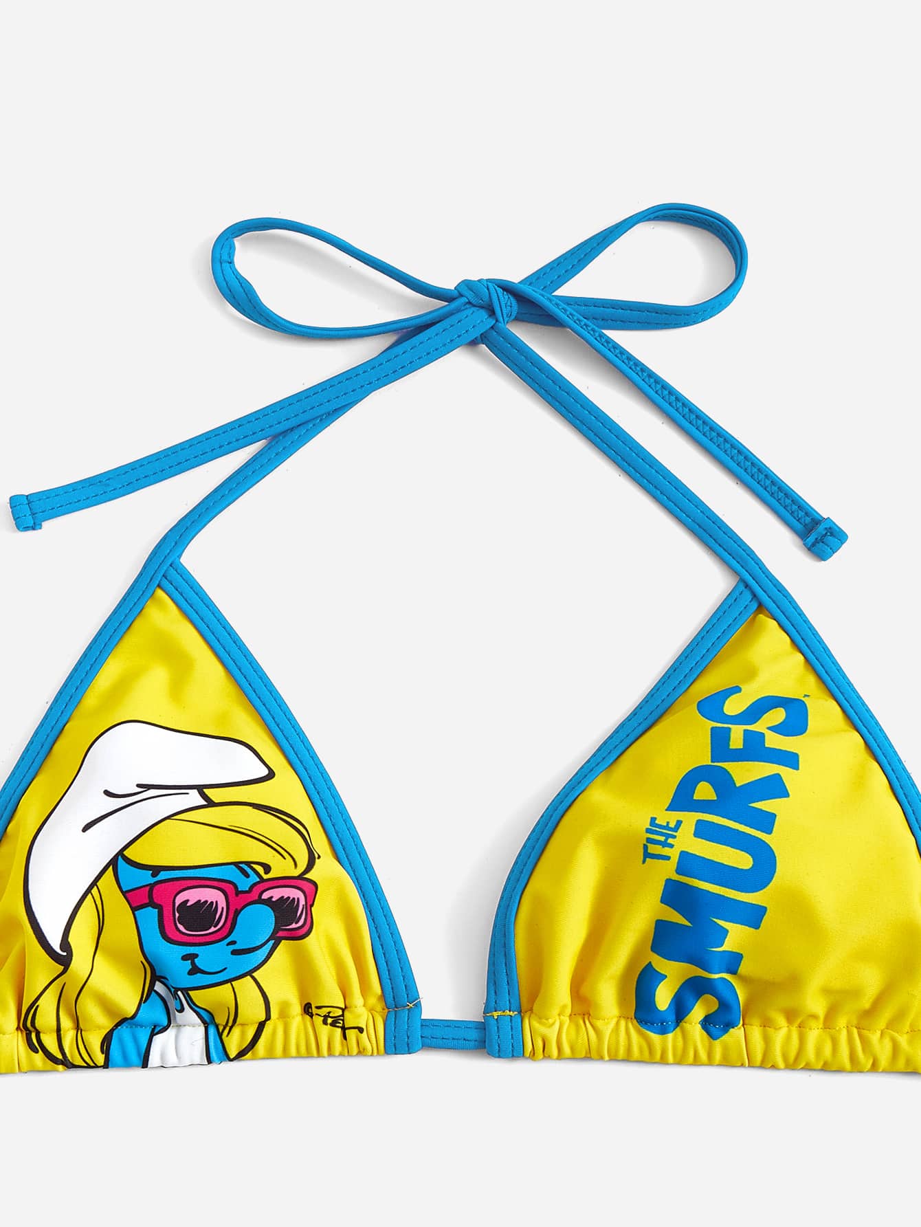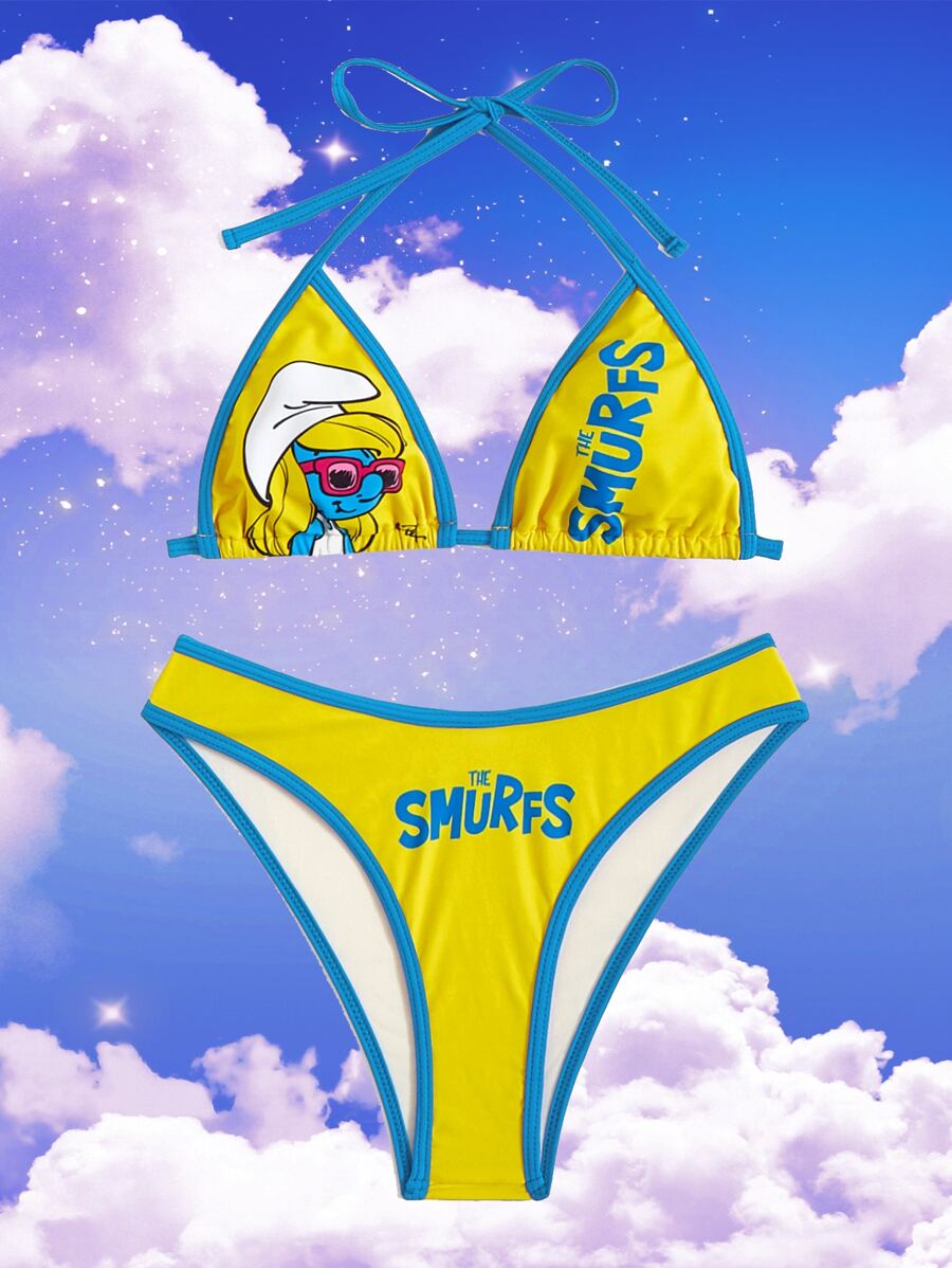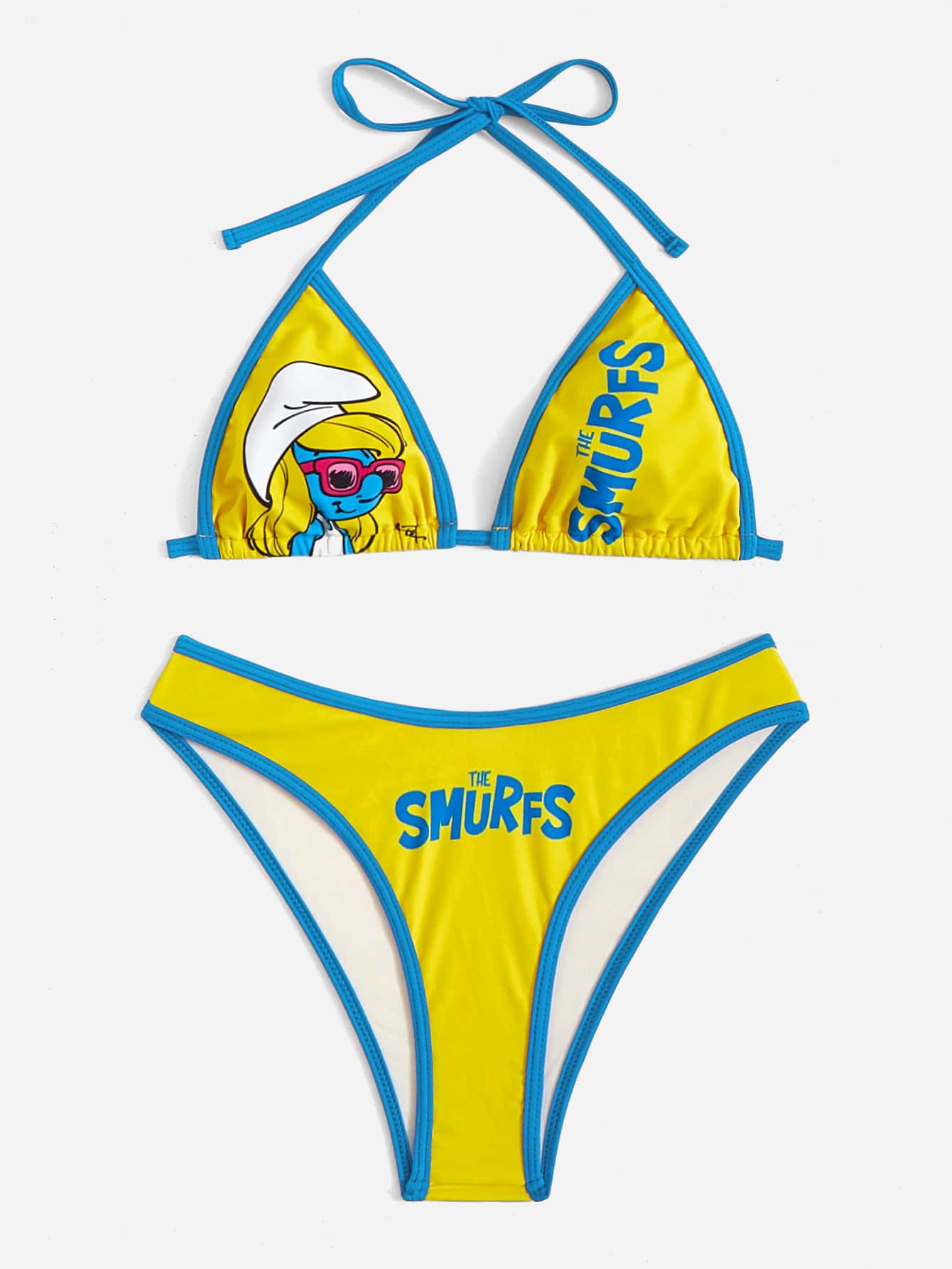 ROMWE X The Smurfs Bikini à biais contrasté à imprimé de lettres et de dessins animés