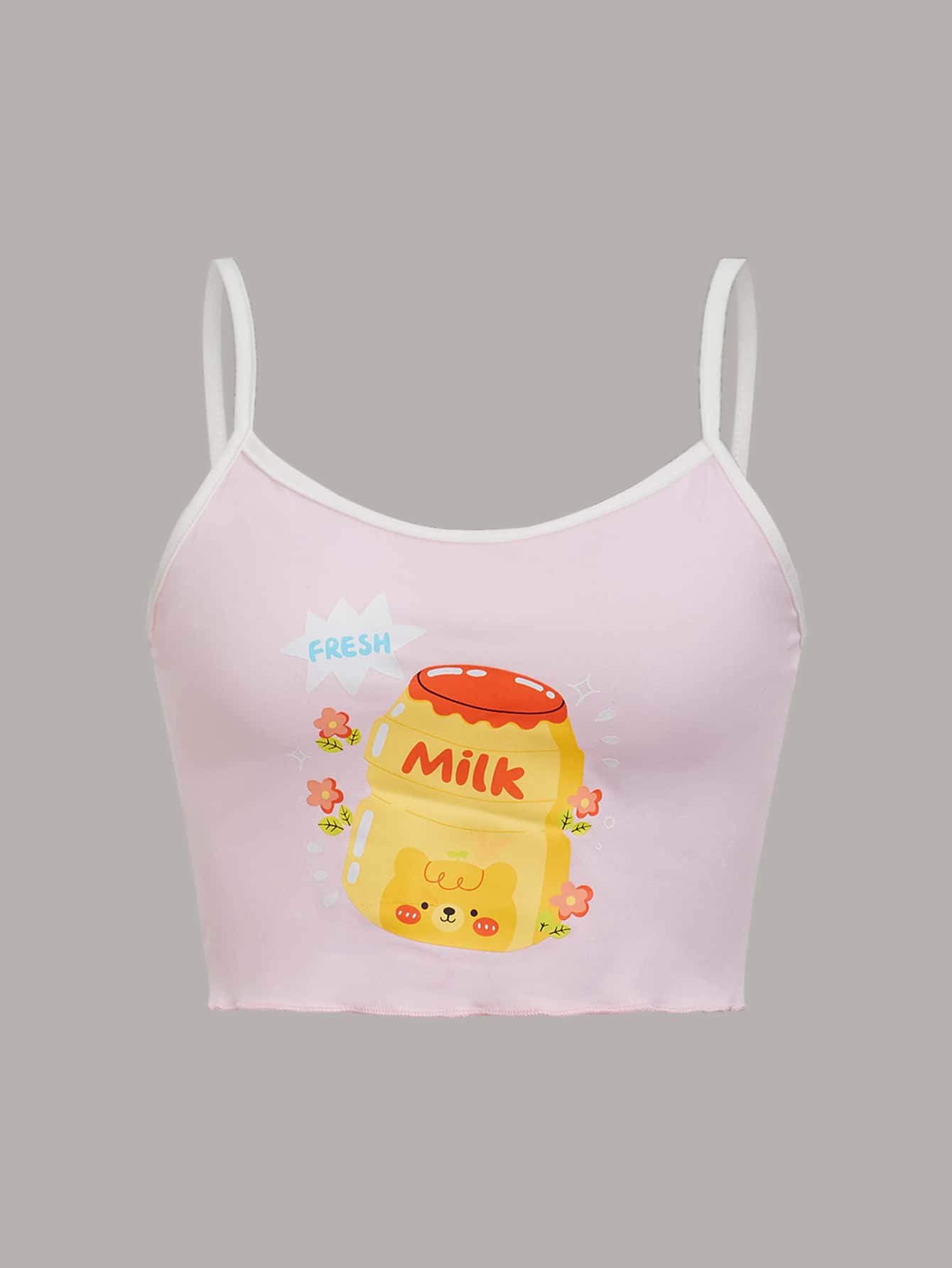 YANLIU Top À Fines Brides Dessin Animé À Liseré Contrastant