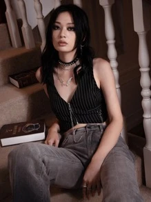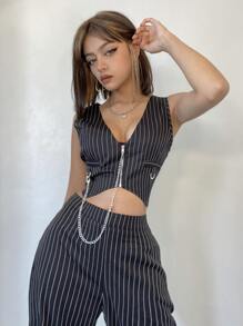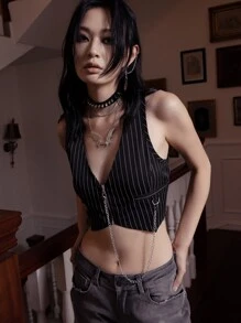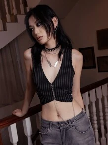 Dark Academia Gilet à chaîne à rayures zippé