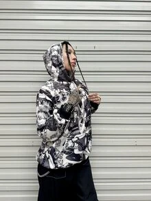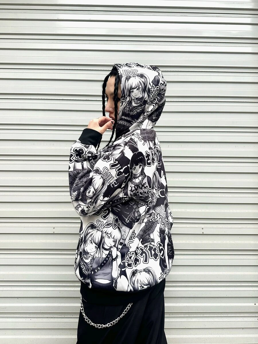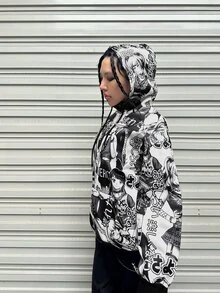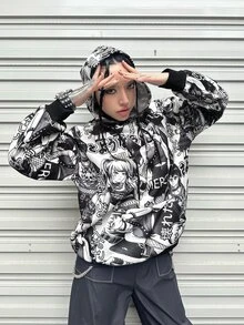 Anime Sweat-shirt à capuche thermique lettre dessin animé à cordon