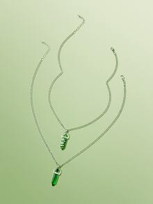 Fairycore 2 pièces Collier avec pendentif à pierre