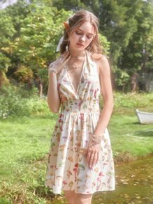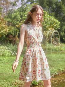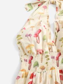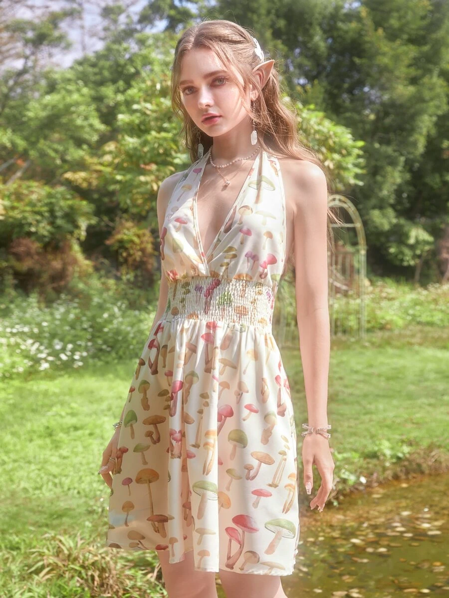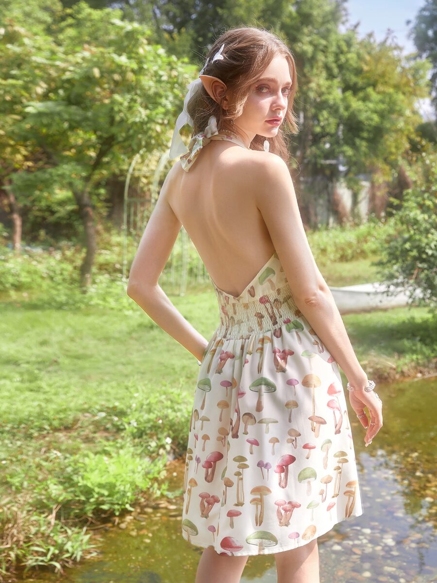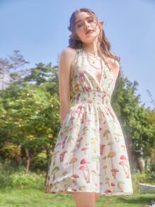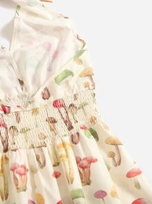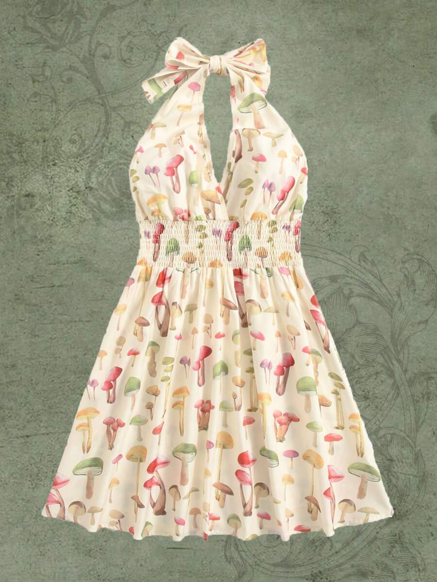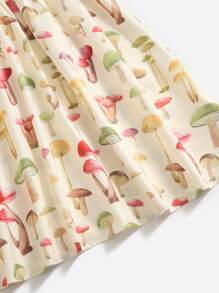 Fairycore Robe Ras-Du-Cou Imprimé Champignon Froncé