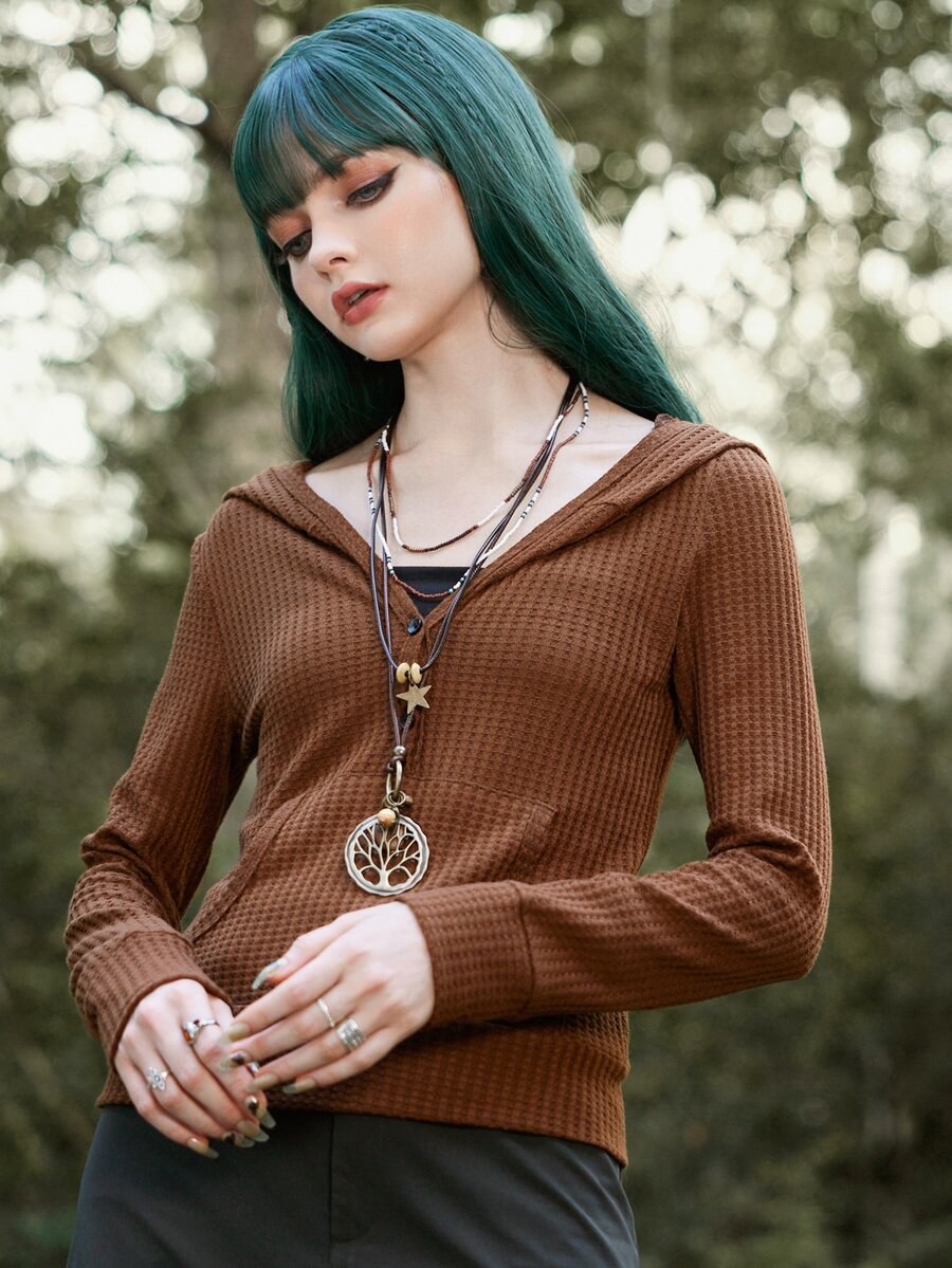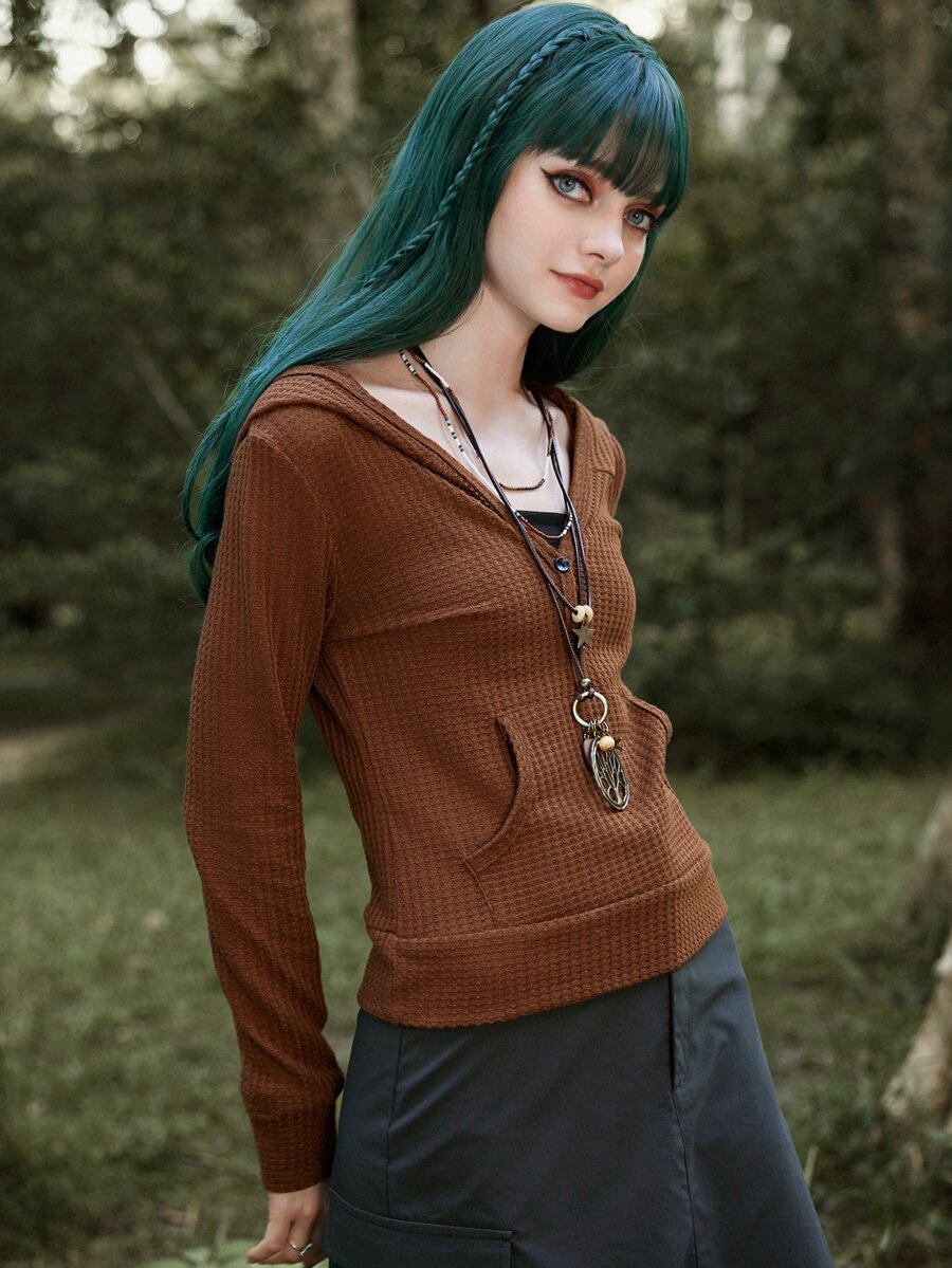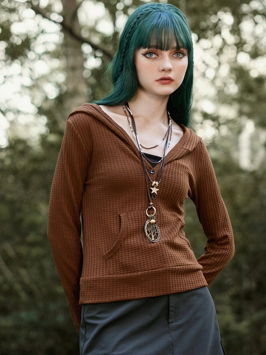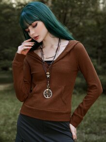 Fairycore Sweat-shirt à capuche unicolore à poche kangourou