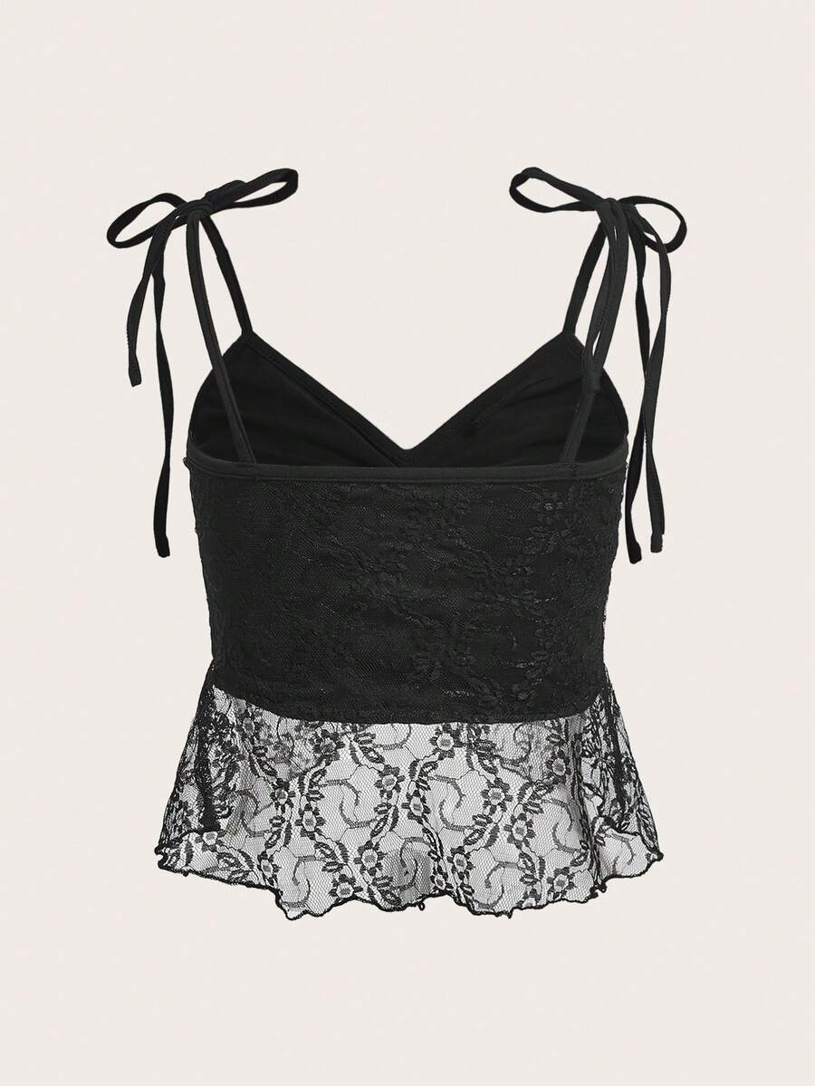 Goth Top À Fines Brides En Dentelle À Épaule Nouée