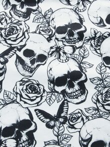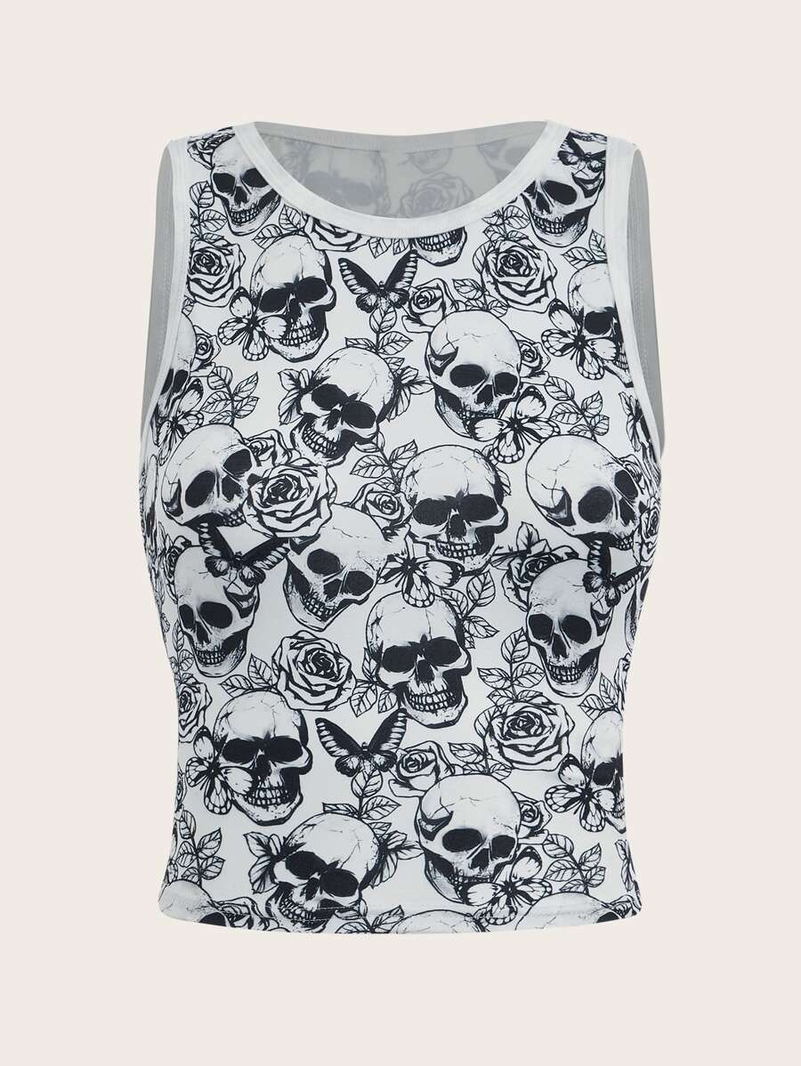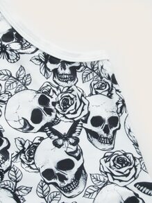 Top sans manches fleuri à motif tête de mort à liseré contrastant