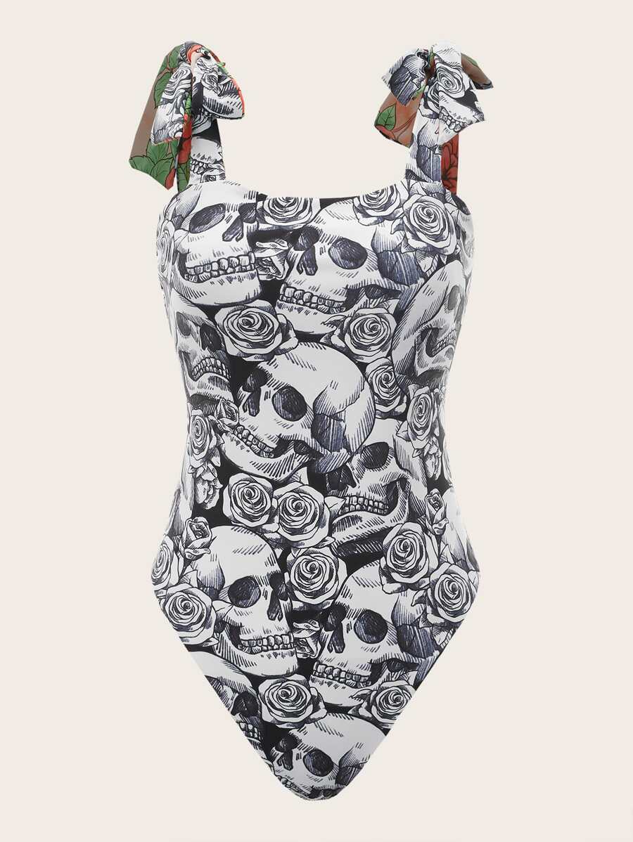 Maillot de bain une pièce tête de mort & à imprimé rose réversible