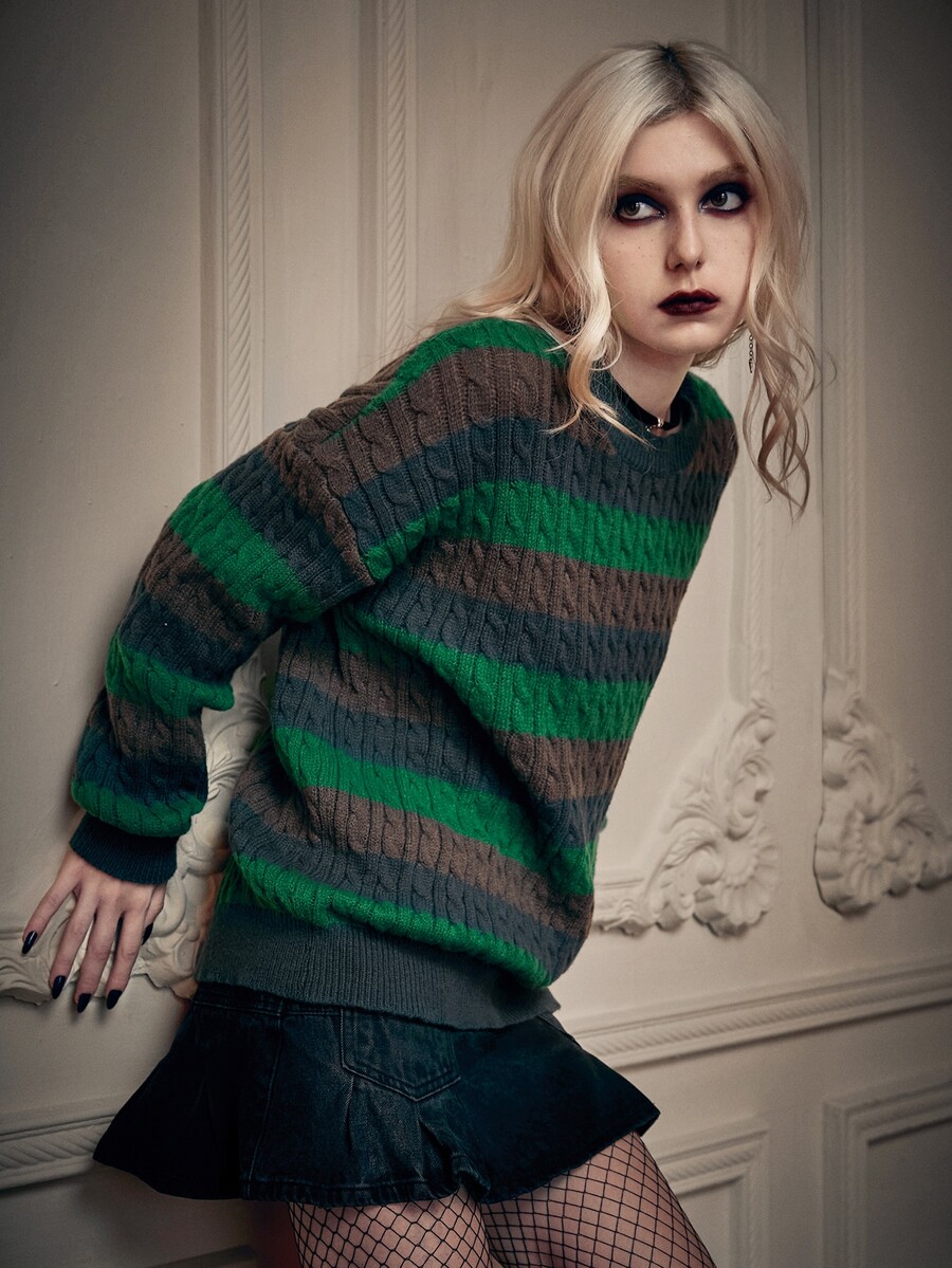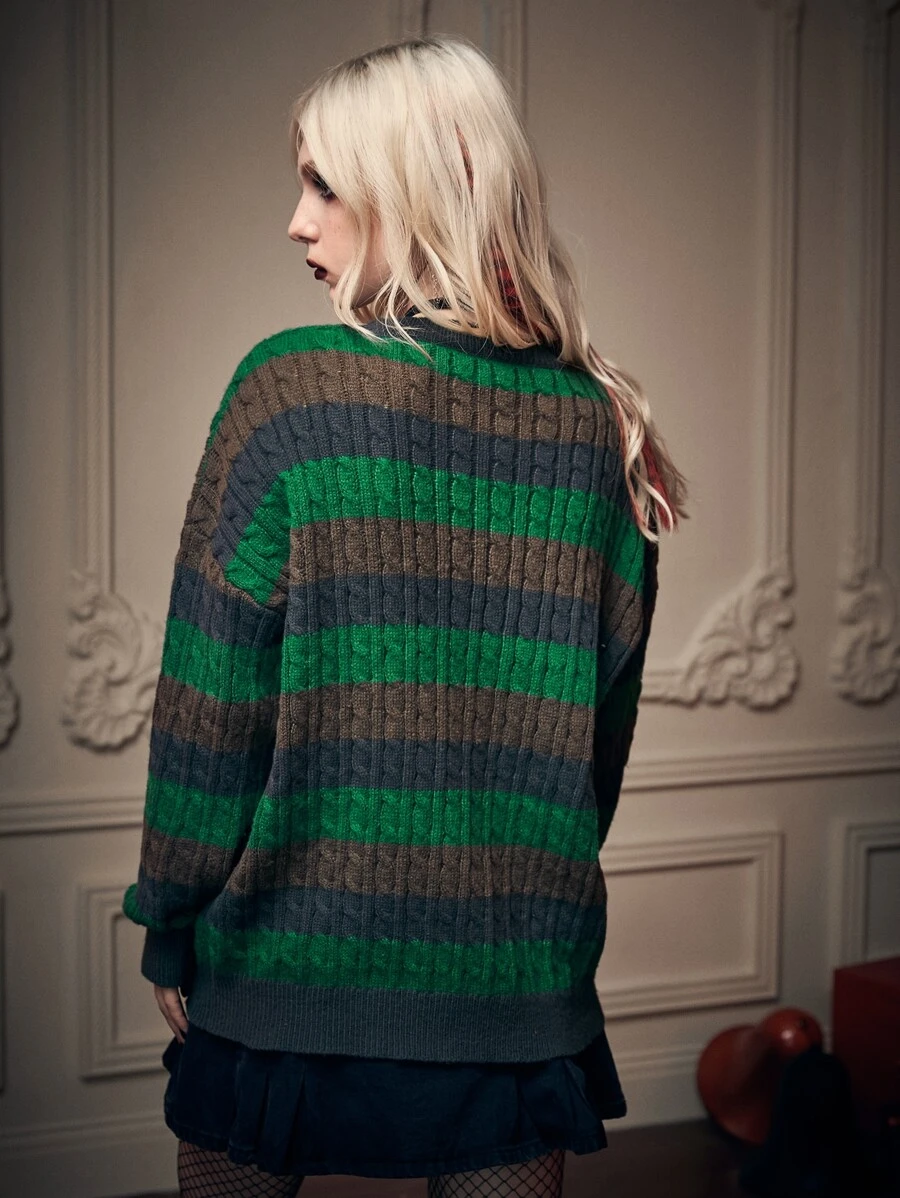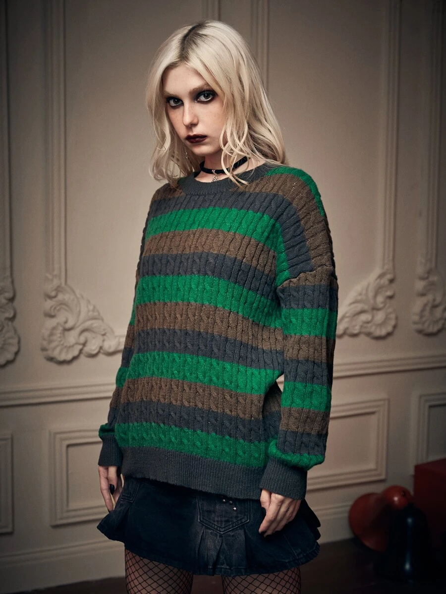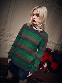 Goth Pull à rayures en tricot torsadé