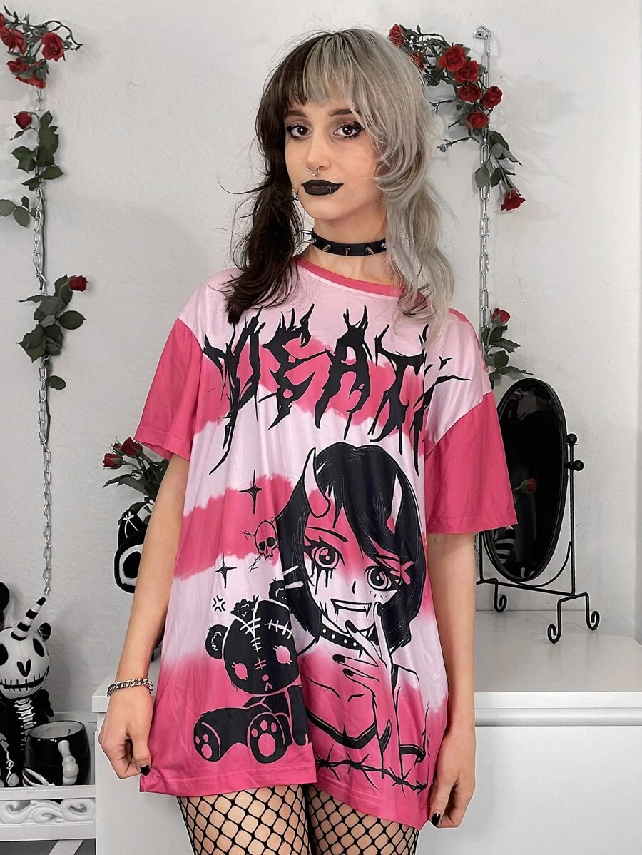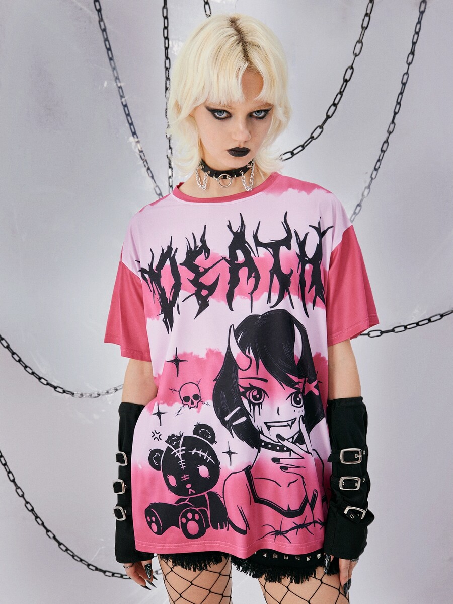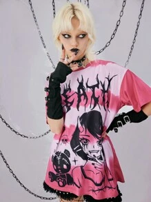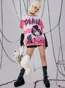 Grunge Punk T-shirt à motif figure