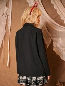 Grunge Punk Chemise à imprimé squelette à bouton