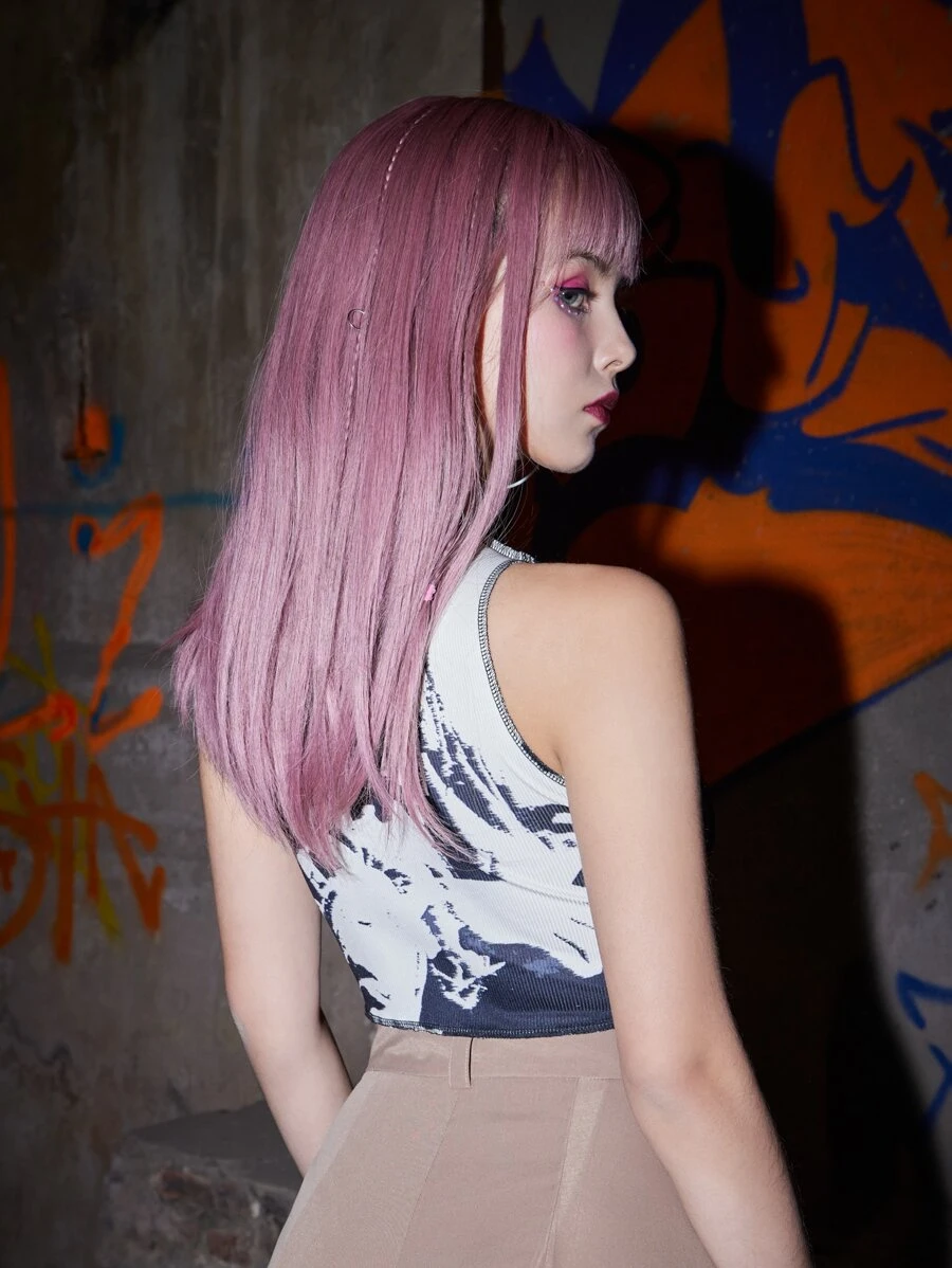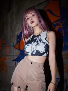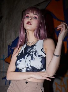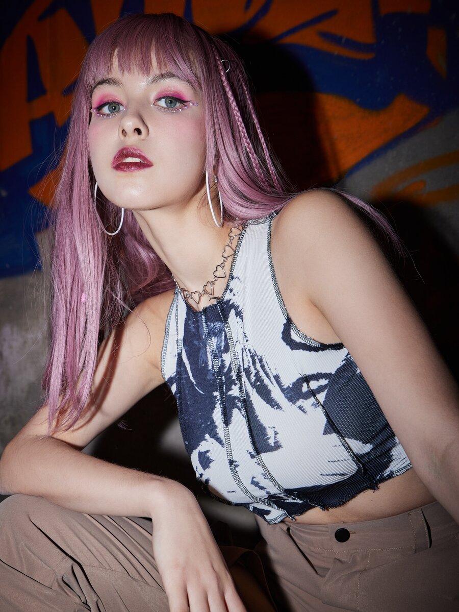 Grunge Punk Top sans manches à couture tie dye côtelé