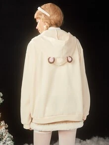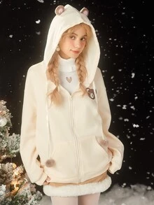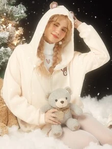 Kawaii Sweat-shirt à capuche à imprimé ours zippé à cordon