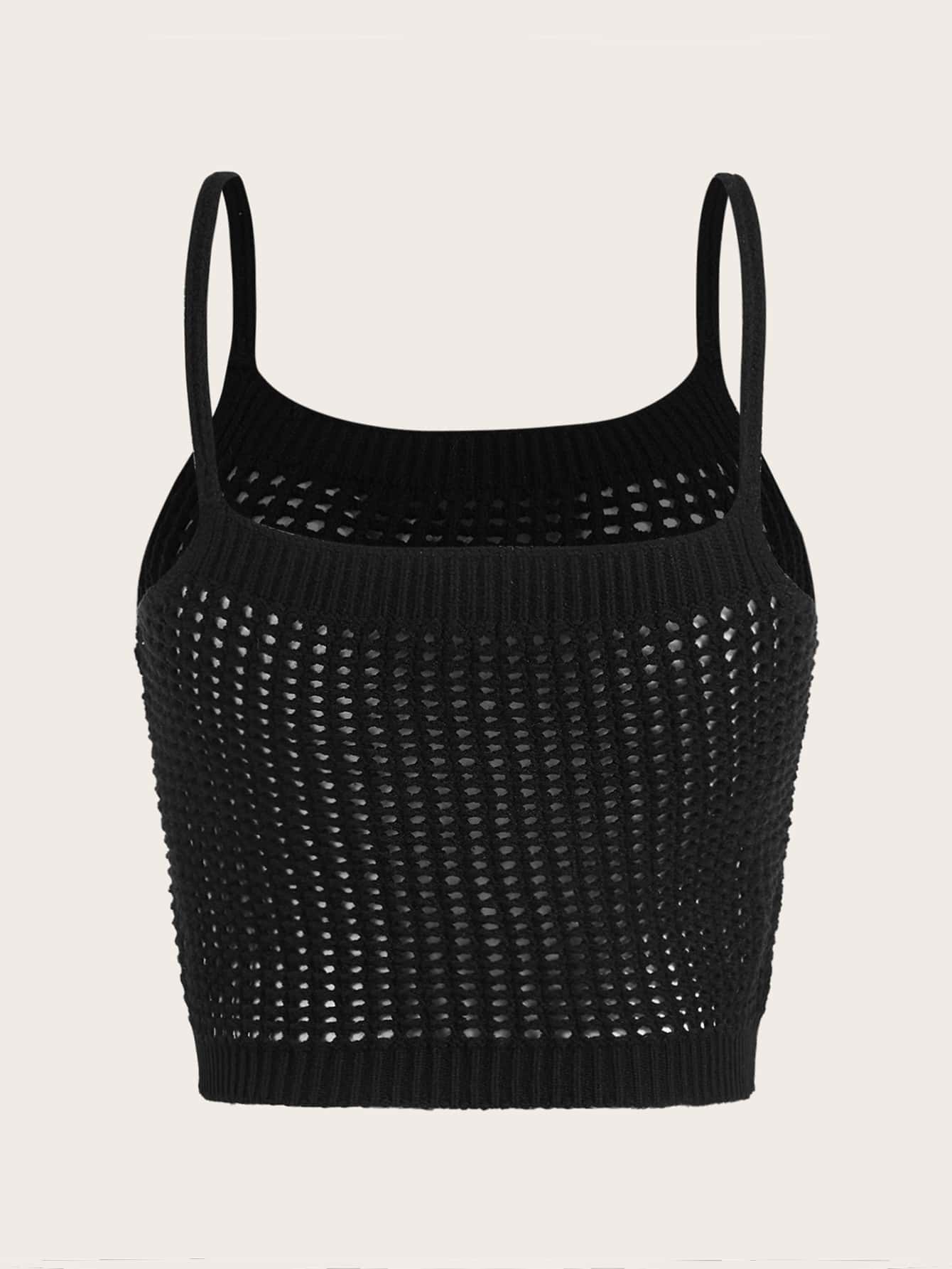 Kawaii Top en tricot à fines brides à motif étoile ajouré