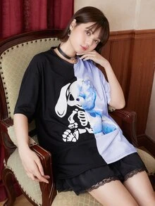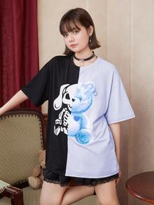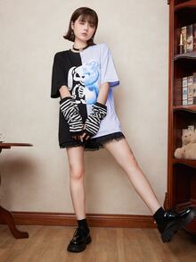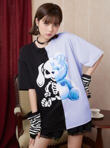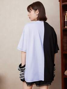 Kawaii T-shirts pour femmes Casual Cartoon Blocs de couleur