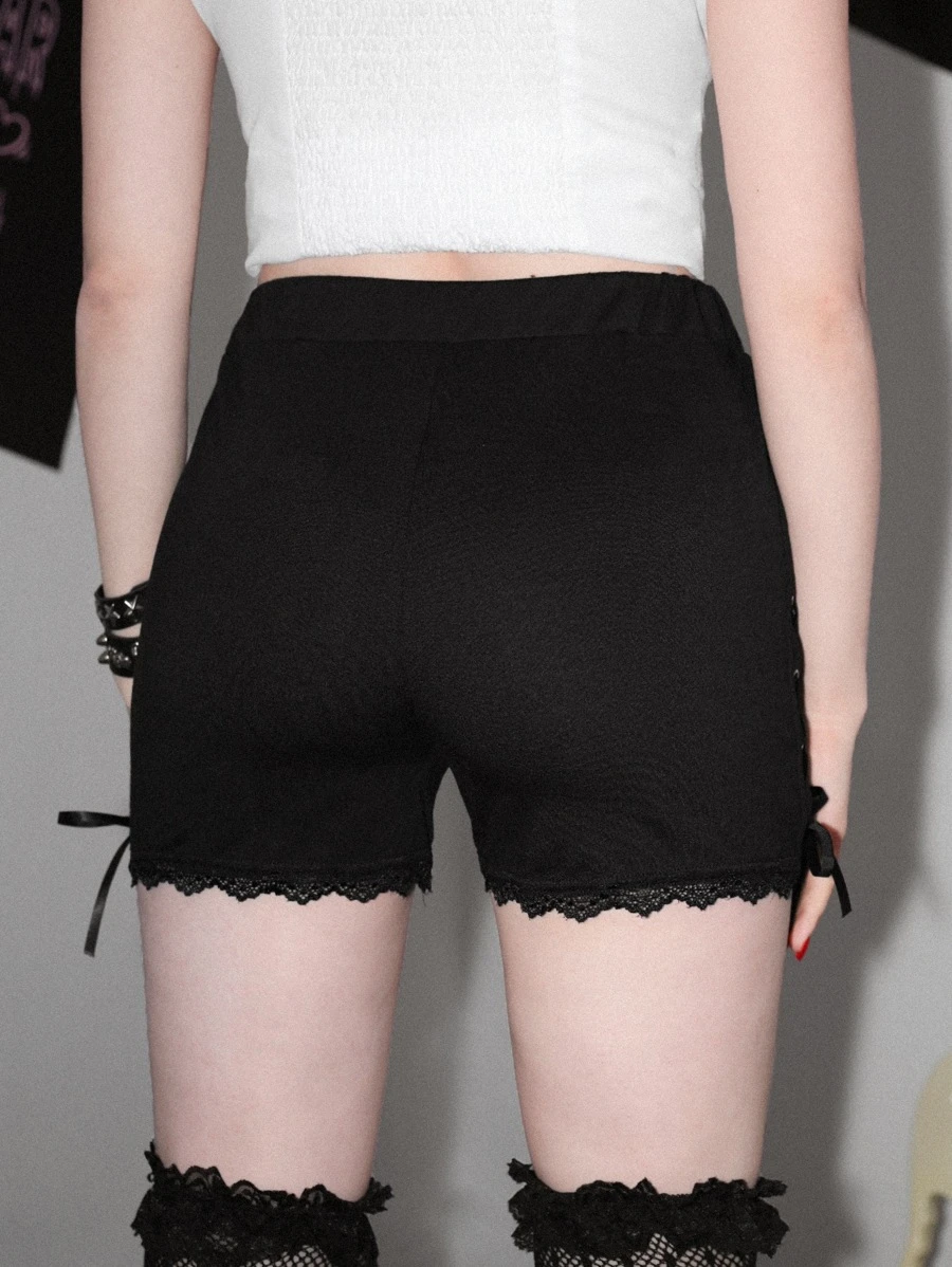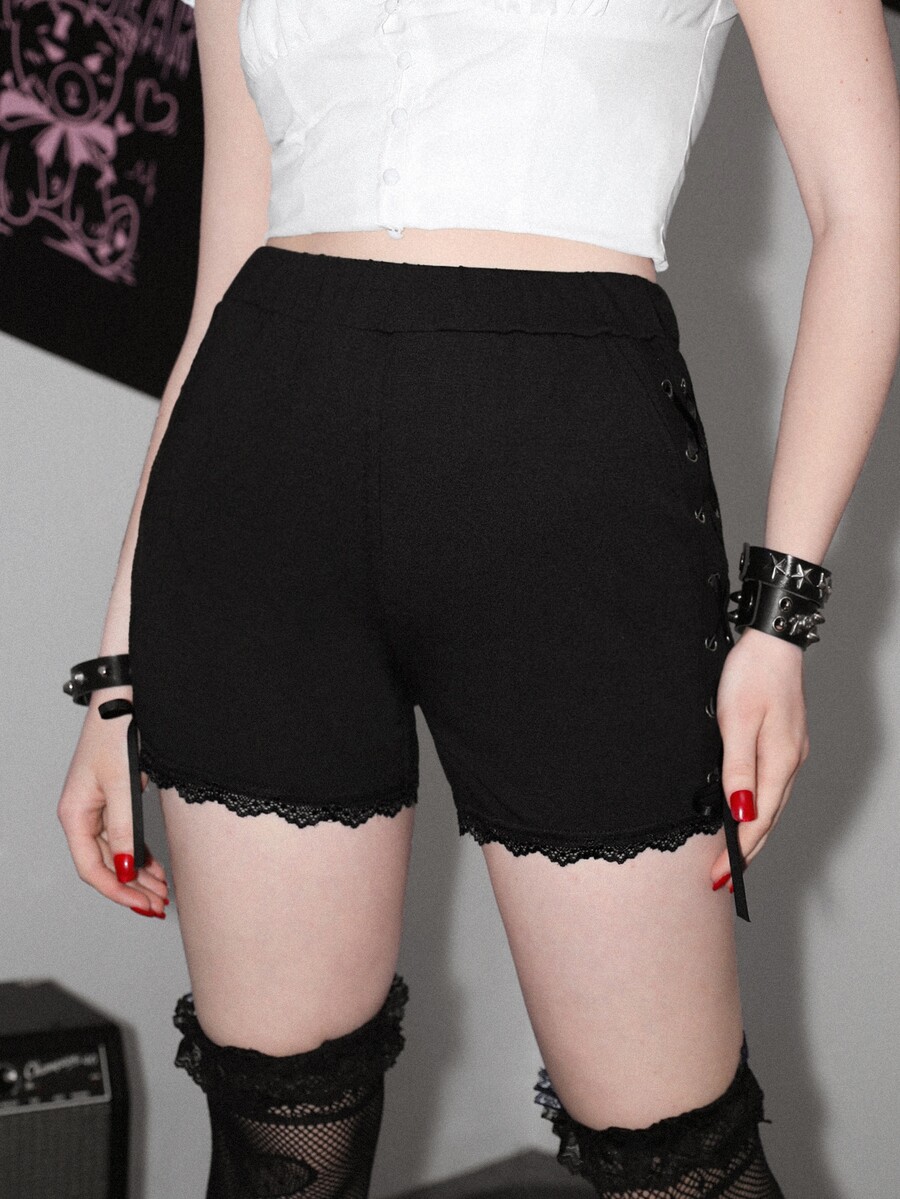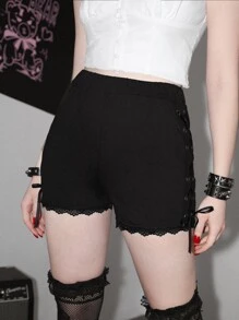 Shorts pour femmes Dentelle contrastée Œillets Lacets Casual Unicolore
