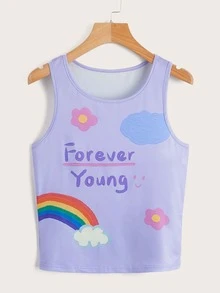 Top sans manches arc-en-ciel lettre à imprimé floral