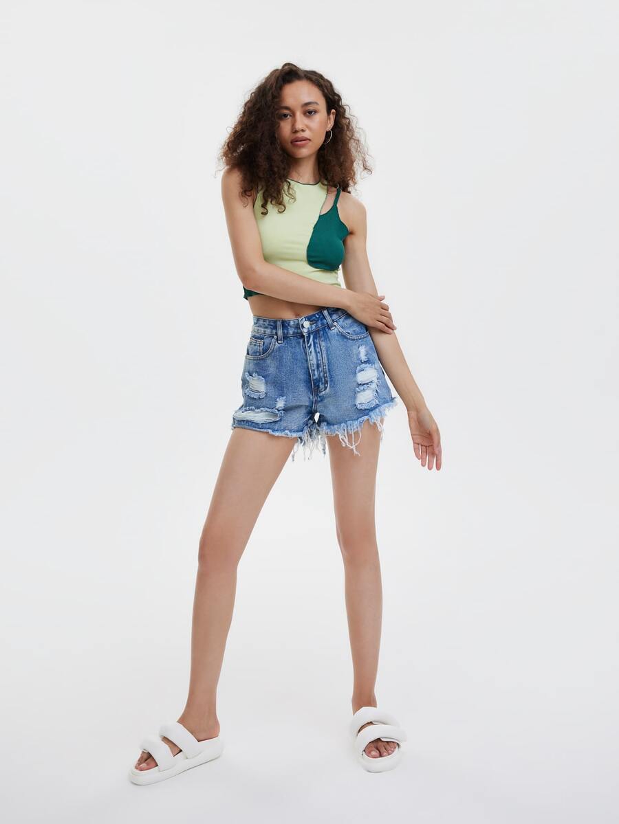Short en jean déchiré effiloché